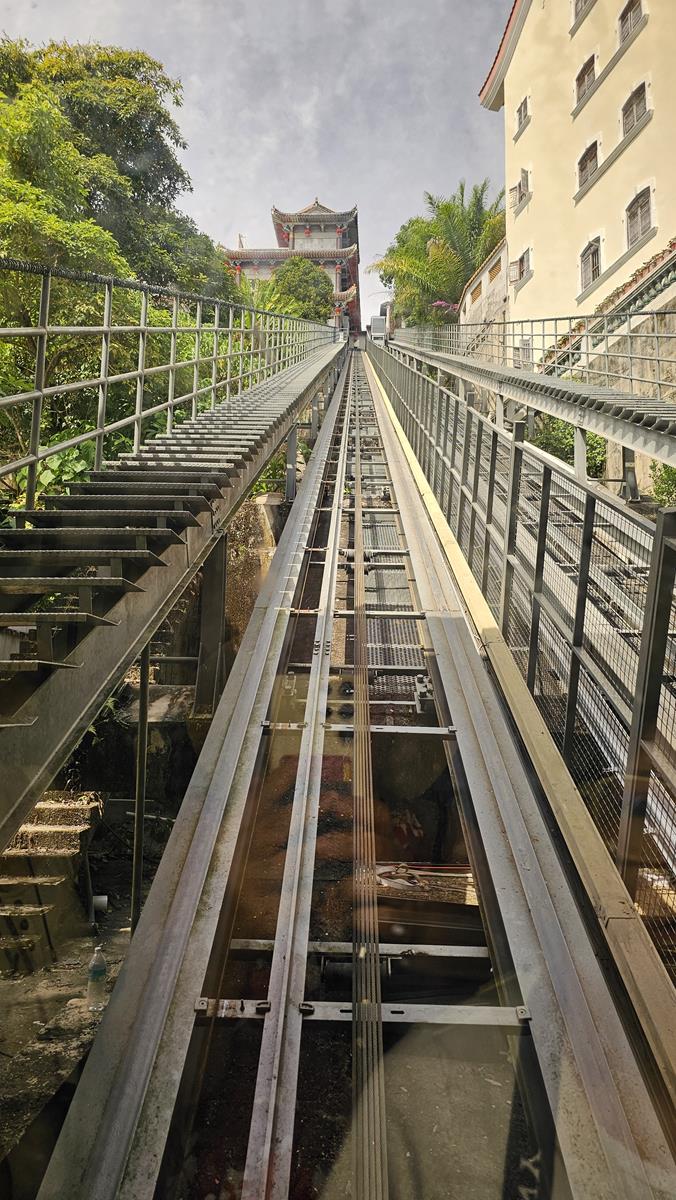 Nach einer kurzen Wartezeit steigen wir mit vielen anderen Wartenden in die Schrägseilbahn und nach kurzer Zeit sind wir oben auf der höchsten Erhebung des Tempelkomplexes.
