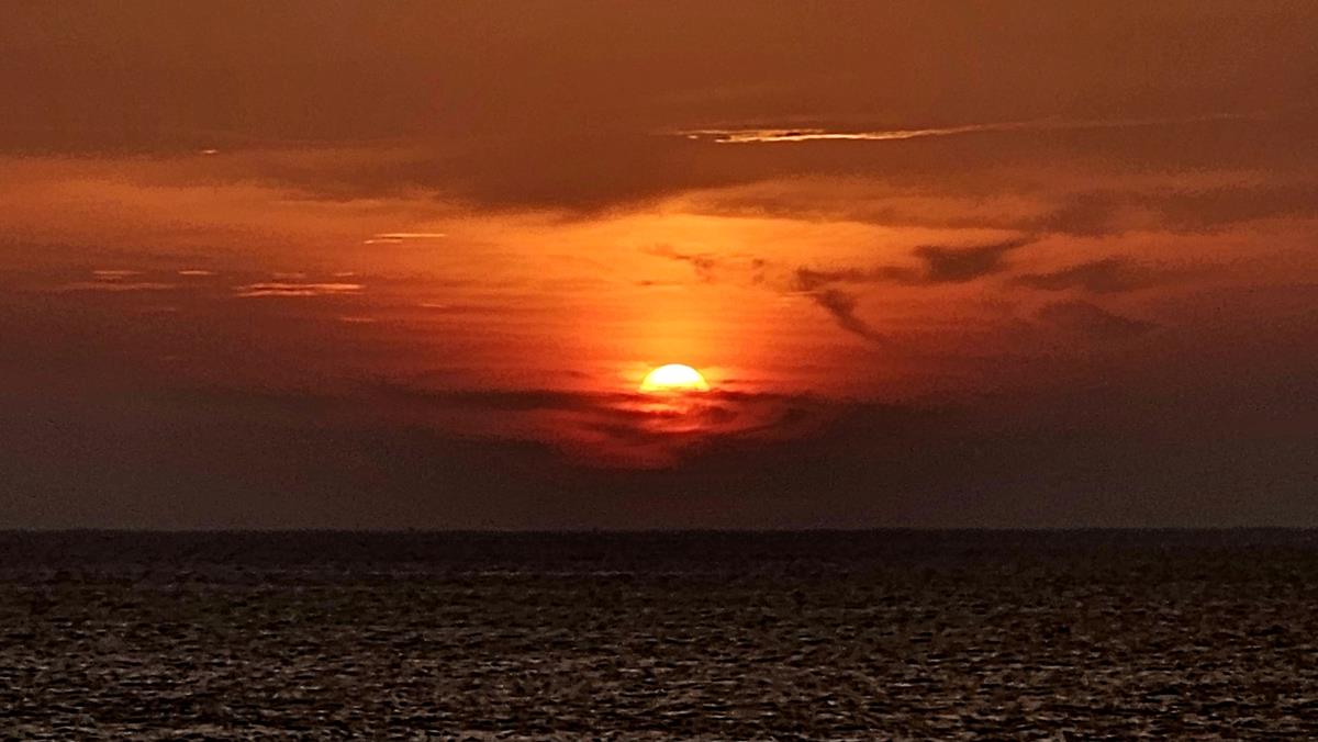 Nach dem Abendessen nehmen wir noch einen wunderschönen Sonnenuntergang mit und das war es auch für heute.