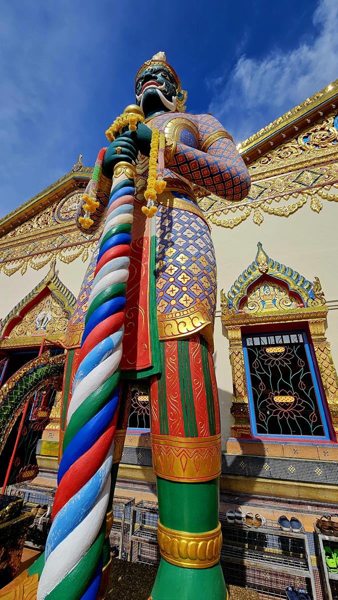 Nach rund 20 Minuten haben wir unseren Rundgang beendet und gehen in Richtung Tor. Unser nächstes Ziel liegt direkt auf der anderen Straßenseite: Der thailändisch-buddhistische Tempel Wat Chayamangkalaram.
