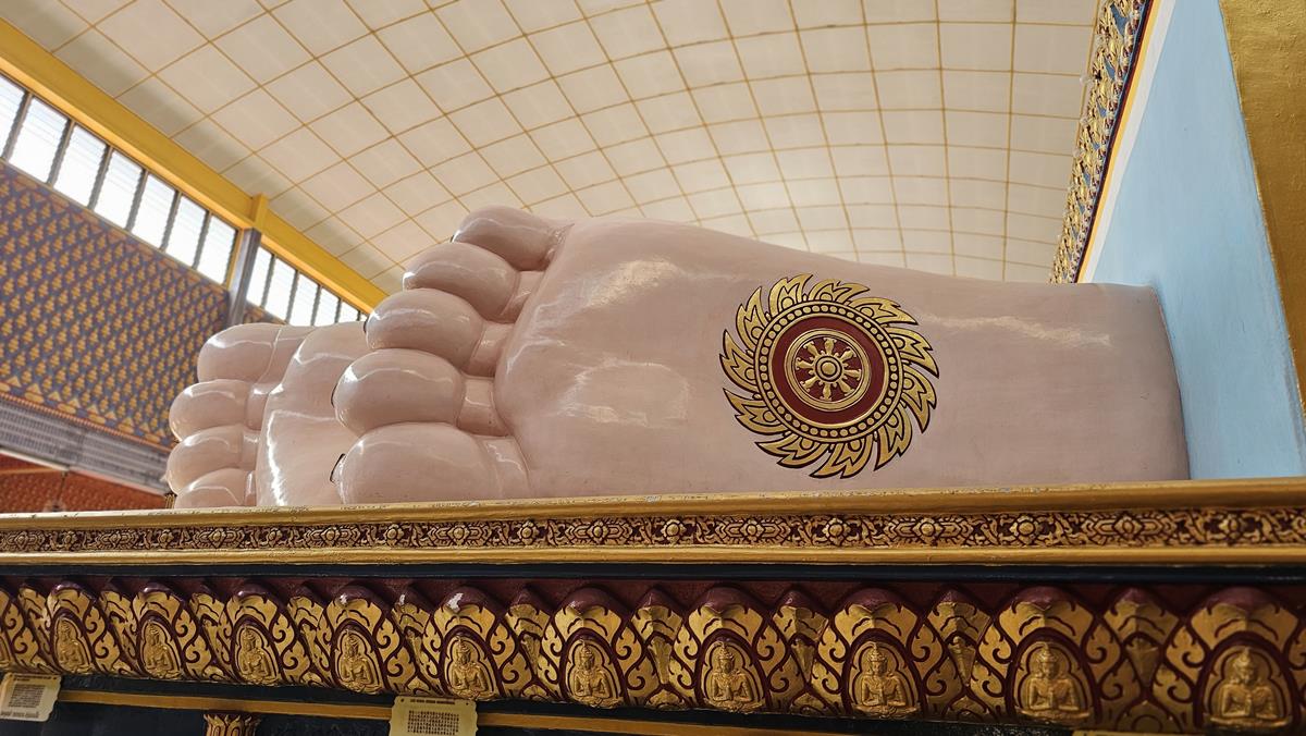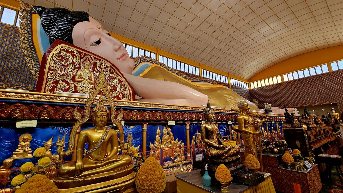 Der Tempel ist im typischen Thai-Stil und extravaganten Decken gestaltet. Die liegende Buddhastatue, Phra Chaiya Mongkol, steht für Frieden und für Freiheit von der materiellen Welt. Mit ihren 33 Metern Länge zählt sie zu den größten Reclining Buddhas der Welt.