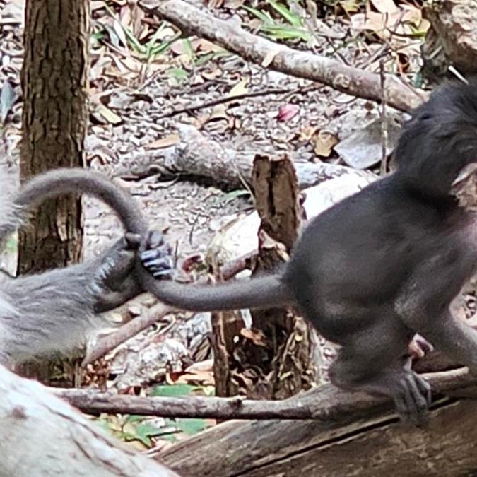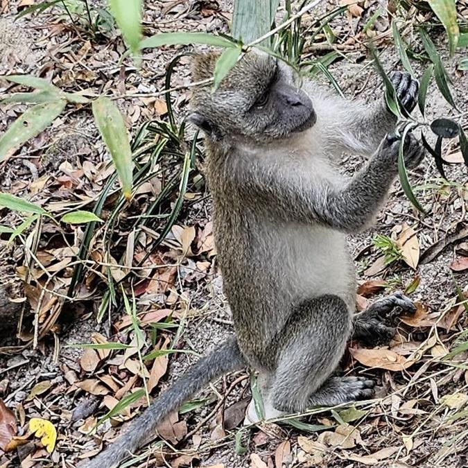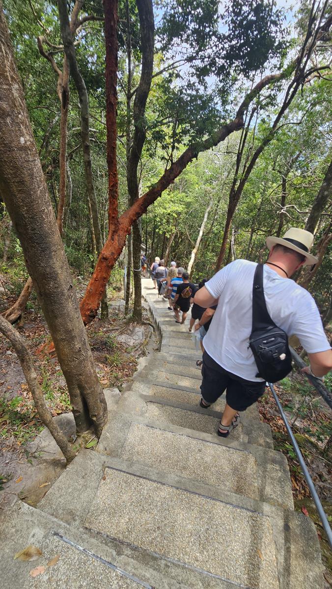 Mutig machen wir uns wieder auf den Weg über die 300 Stufen. Wieder steil bergab und dann mühsam wieder bergauf. Stufe um Stufe schleppen wir uns Richtung Bergstation der Seilbahn. Und das bei dieser Hitze. Auf dem Weg treffen wir auch ein paar Affen. Eine willkommene Pause beim Treppenklettern. Zurück ist es fast einfacher – kaputt sind wir trotzdem 😉