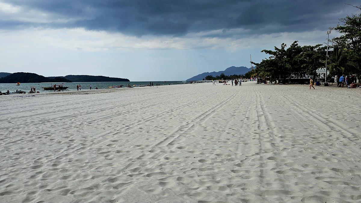 Der Cenang Beach ist ca. vier Kilometer vom Hafen entfernt. Oder wie man in Malaysia sagt, Pantai Cenang. Der Cenang Beach ist mehr als zwei Kilometer lang und touristisch gut erschlossen. Man kann Liegen und Sonnenschirme mieten und alle Arten von Wassersport betreiben. Oder in zahlreichen Strandrestaurants etwas essen oder trinken.