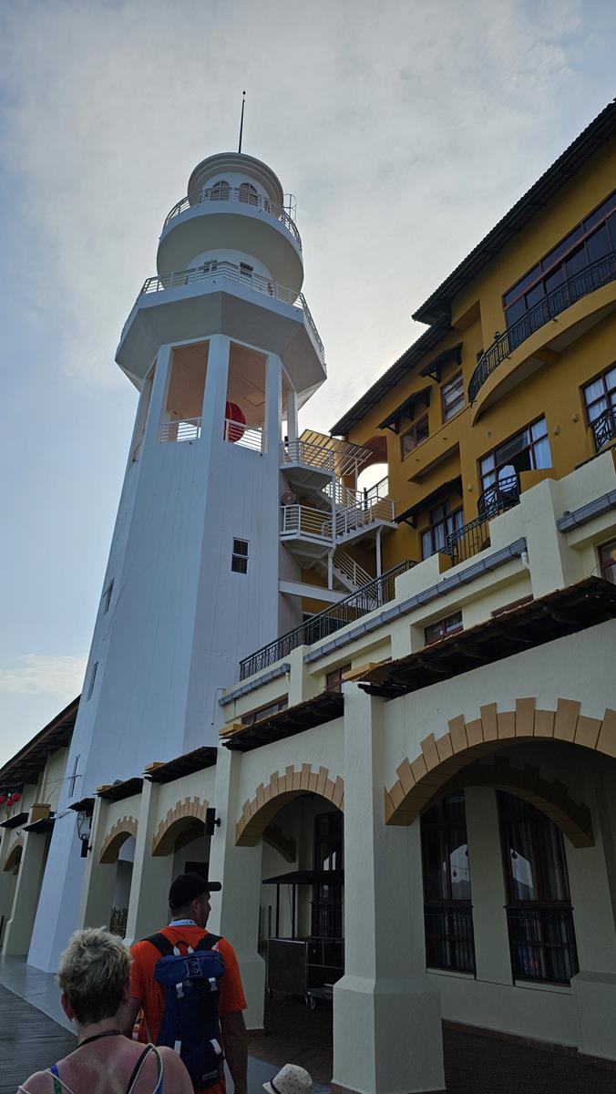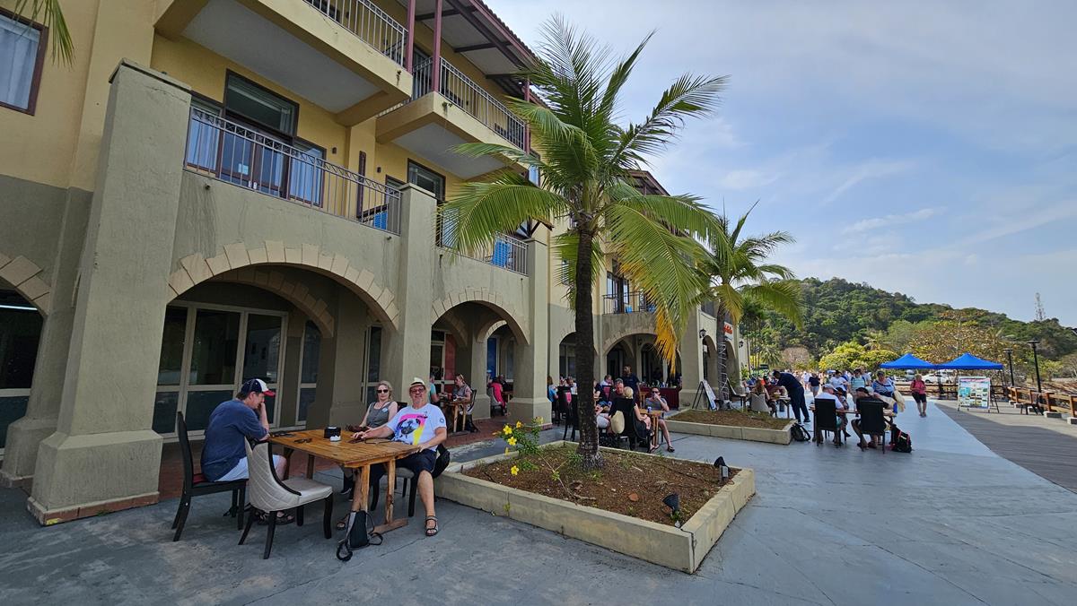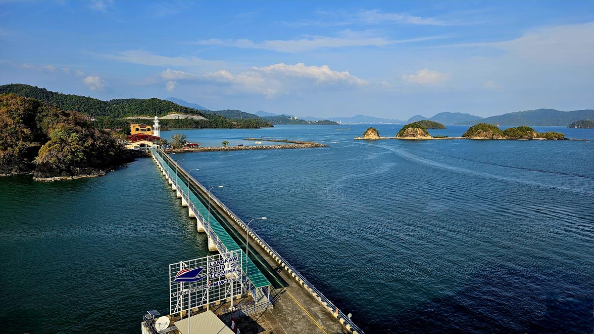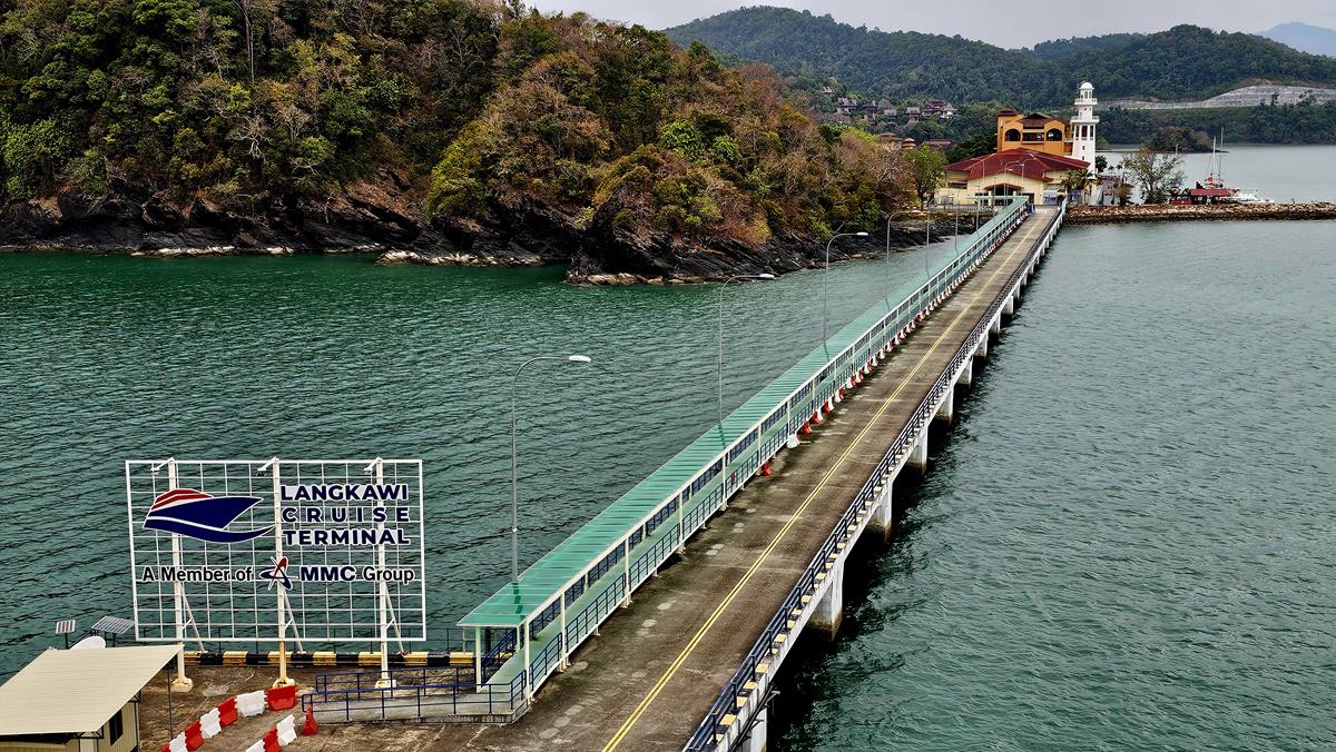 Pünktlich um 9 Uhr kommen wir am Langkawi Cruise Pier im Südwesten der Insel an. Hier kann genau ein großes Kreuzfahrtschiff anlegen. Ein Cruise Terminal gibt es nicht. Man läuft einfach über den 370 Meter langen Pier an Land. Am Ende des Piers gibt es neben Hotels auch eine schöne Promenade mit Restaurants und Geschäften. Hier befindet sich auch der Treffpunkt für unseren Ausflug.
