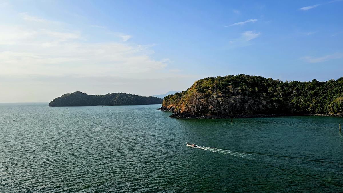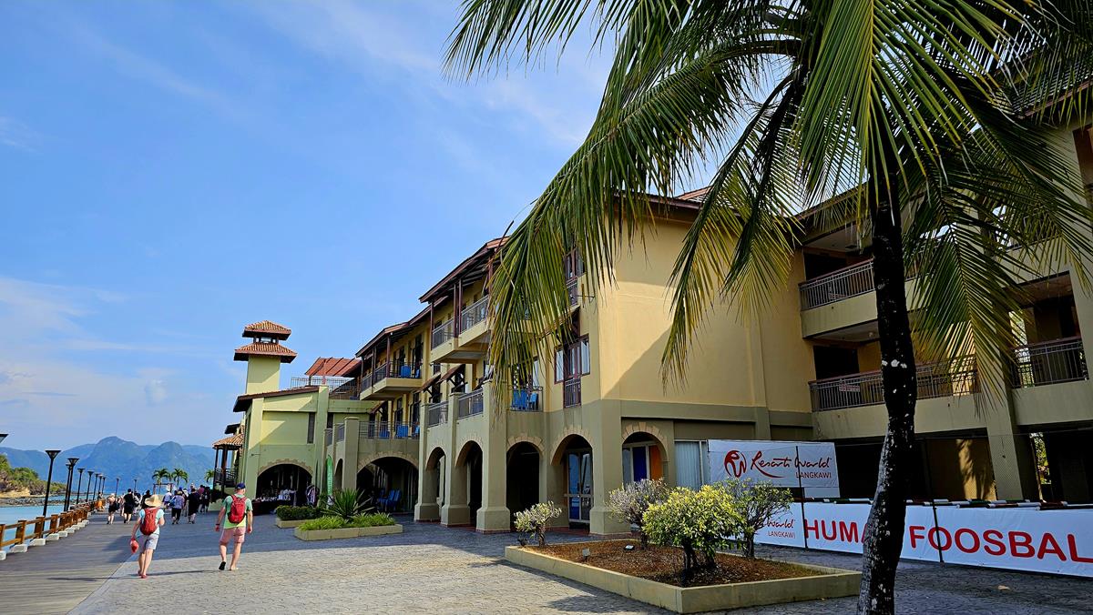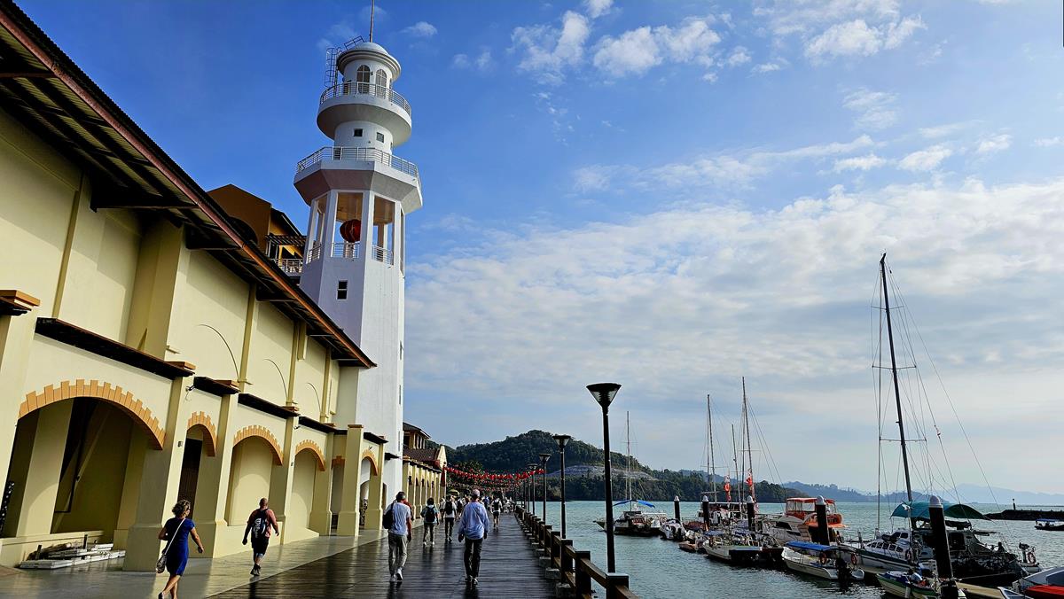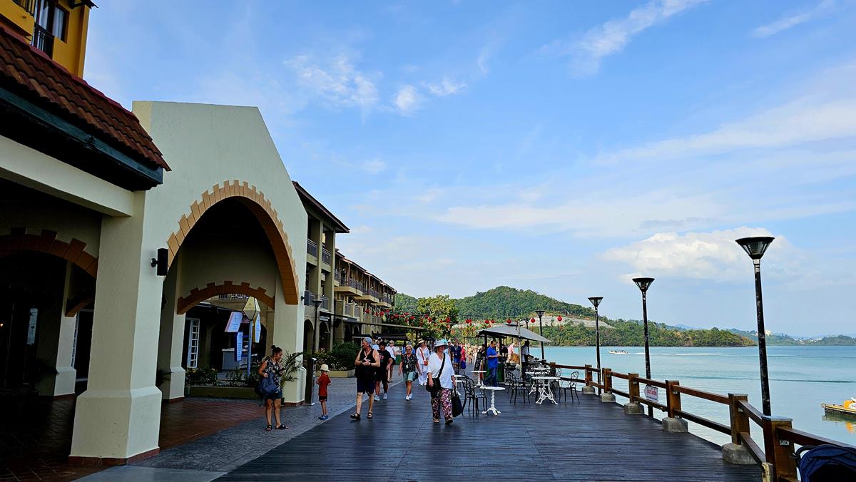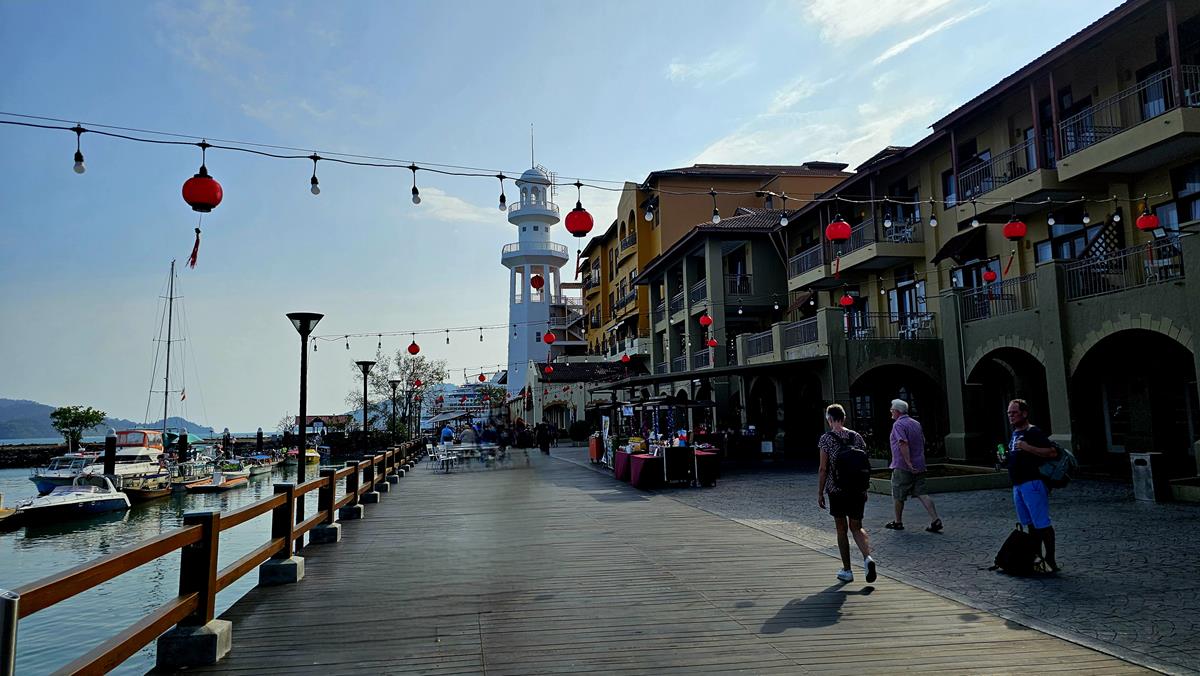 Zum Abschluss schlendern wir kurz über den Cenang Walk zu unserem Treffpunkt am Bus. Alle anderen Tourgäste sind ebenfalls pünktlich. Der Ausflug neigt sich dem Ende, letzte Station ist das Schiff am Hafen. Die Fahrt dorthin dauert nur 10 Minuten.
