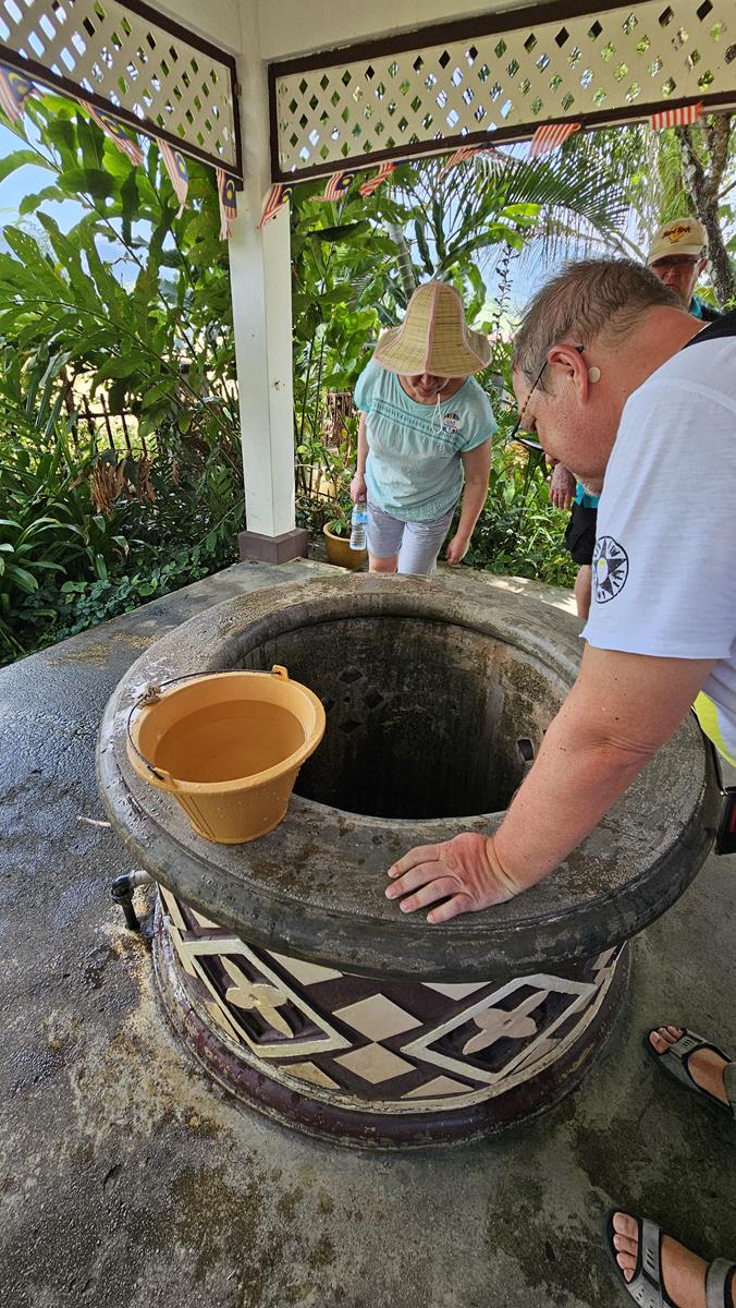 Wir schlendern über die Anlage und schauen uns die traditionelle Bauweise der Häuser an. Nikki erzählt allerlei Wissenswertes rund um Malaysia und Langkawi im Speziellen. Ach ja, auch am Brunnen der Mahsuri kommen wir vorbei, hier soll sie immer Wasser getrunken haben 🙂 Wer’s glaubt 😉