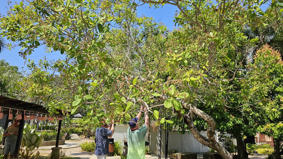 Aus Ehrfurcht wurde Mahsuri ein Denkmal gesetzt. Das Mausoleum liegt inmitten einer kleinen Grünanlage, riesige Cashew-Bäume stehen rund herum. So große Cashew-Bäume haben wir noch nie gesehen.