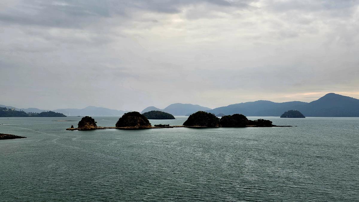 Nach dem Frühstück beobachten wir vom Deck aus das Anlegemanöver. Um uns herum entdecken wir viele kleine Inselchen, ein schönes Panorama!