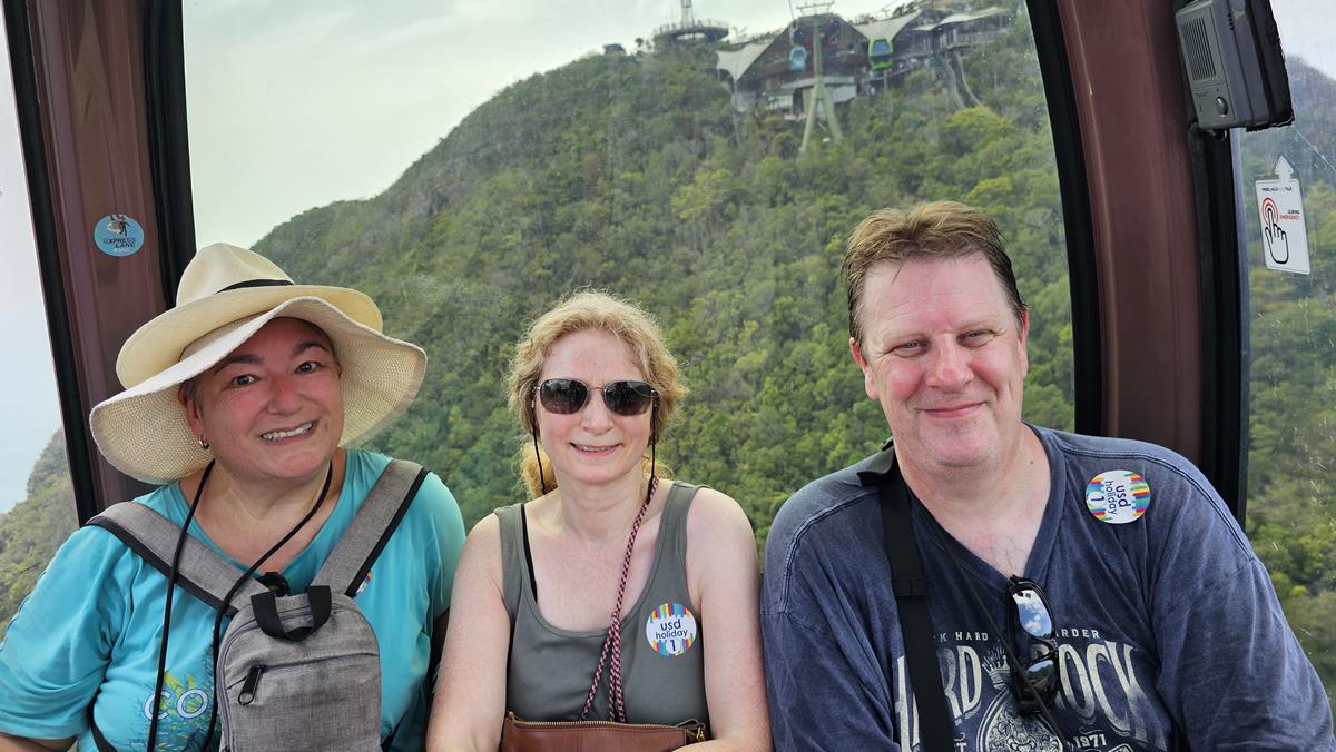 An der Bergstation angekommen, stellen wir uns in die Warteschlange für die Seilbahn. Tourguide Nikki wartet hier auf alle Tourgäste von USD Holiday und koordiniert den Zustieg in die Gondel. Auch auf der Talfahrt macht sich unser Fastlane-Express-Ticket bemerkbar. Sehr zügig besteigen wir vier eine Gondel und es geht zurück zur Talstation.