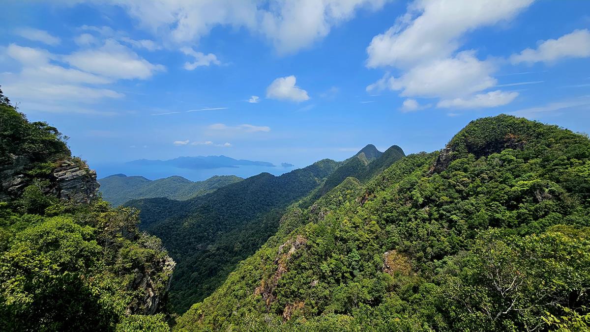 Während der Fahrt haben wir in alle Richtungen einen tollen Ausblick. Unter uns liegt eine der älteste Felsformation Südostasiens, die vor etwa 550 Millionen Jahren entstanden ist. Grüne Berge und Dschungel soweit das Auge reicht. Und das türkisfarbene Meer schimmert und glitzert im Hintergrund wunderschön.