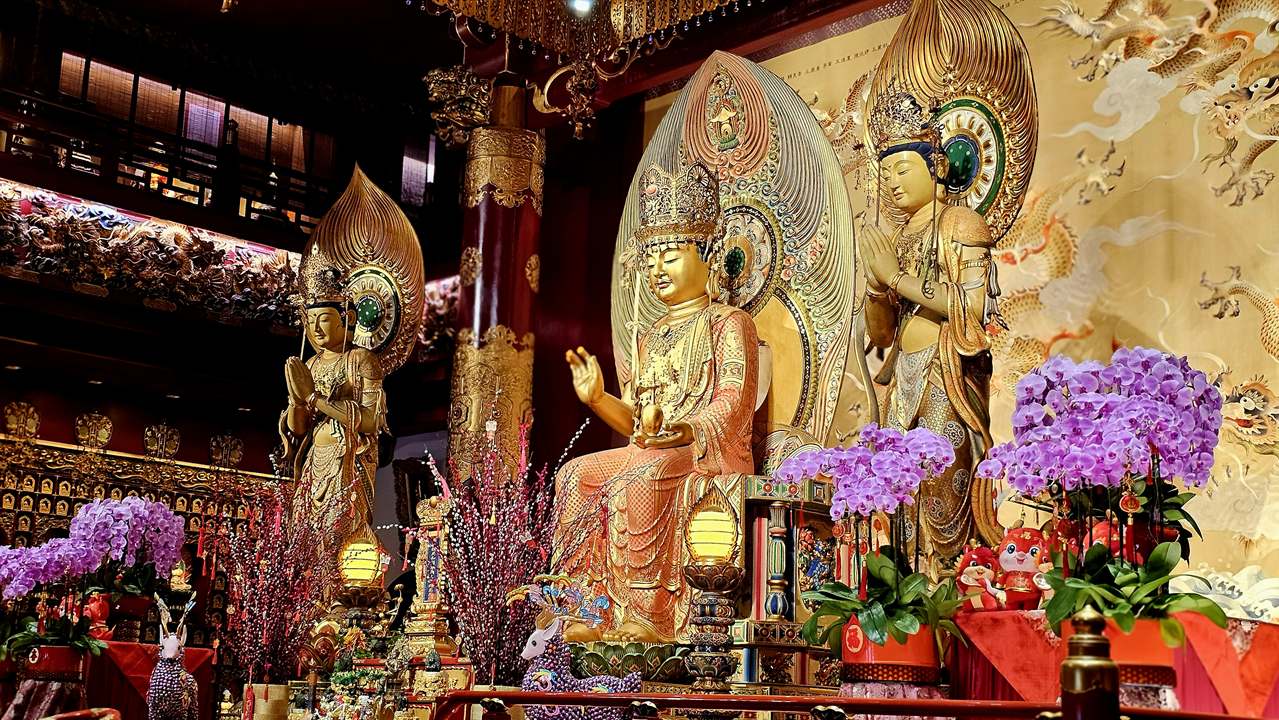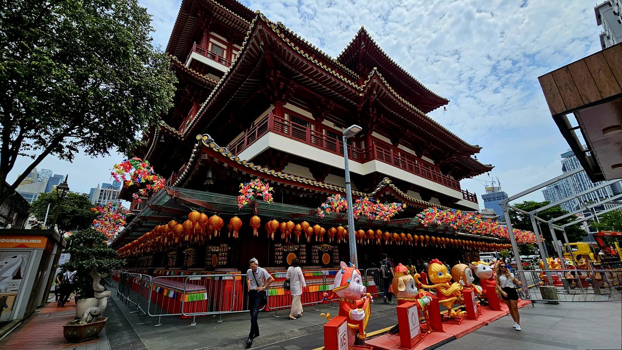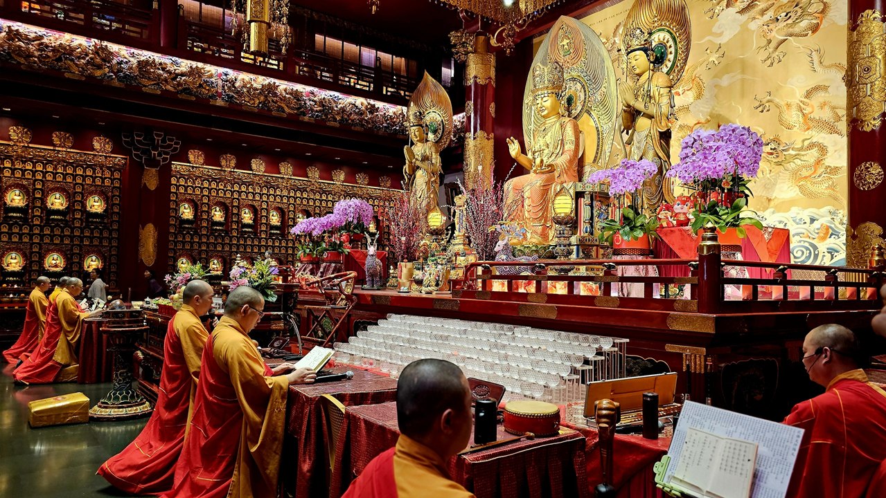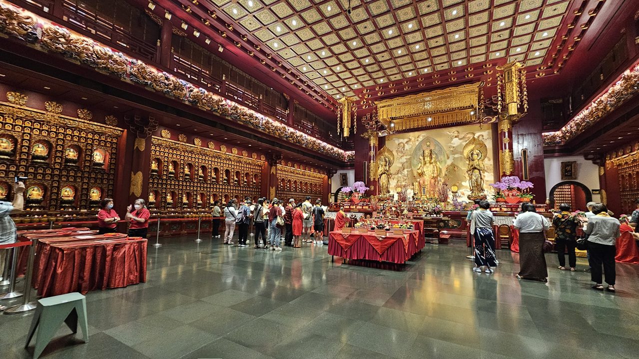 Ein Stück weiter liegt unser eigentliches Ziel: Der Buddha Relic Temple. In diesem berühmten chinesischen Tempel soll sogar ein Zahn Buddhas liegen! Der Tempel zieht uns mit seiner beeindruckenden Architektur und den goldenen Verzierungen sofort in den Bann. Der Tempel beherbergt nicht nur eine Zahnreliquie Buddhas, sondern auch eine wunderschöne Sammlung von buddhistischen Kunstwerken. Und der Clou? Wir dürfen auch einen Blick ins Innere werfen!