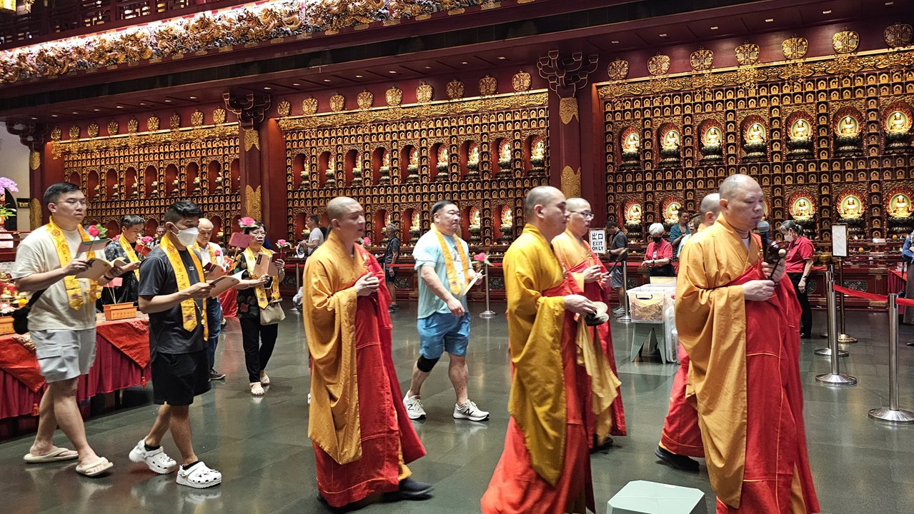 In dieser Halle, mit den Mönchen und buddhistischen Gesängen nehmen wir ein Gefühl der Ruhe und des Friedens wahr. Die Anwesenheit der vielen Gläubigen, die Buddha frische Orchideen, Duftkerzen und Räucherstäbchen darbringen, während sie ihre Gebete und Wünsche flüstern, wirkt friedlich und beruhigend.