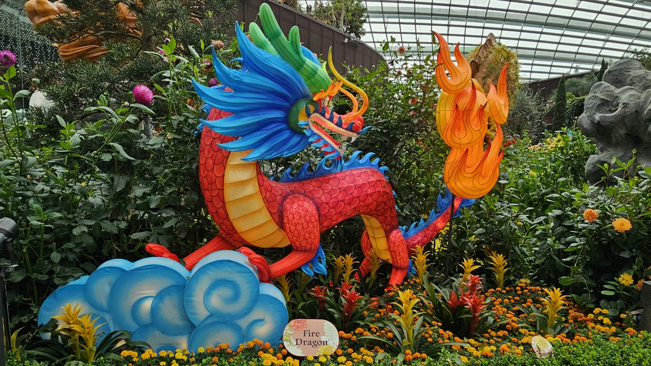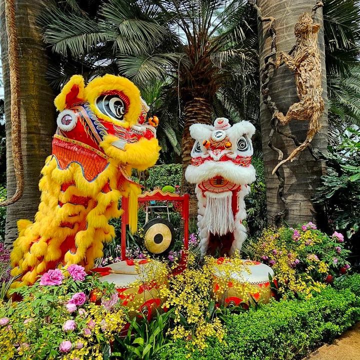 Wir können uns kaum sattsehen an all den kunstvoll gestalteten Drachen, die mitten in die Pflanzenwelt integriert sind. Sie lassen uns förmlich in den festlichen, farbenfrohen Charme des chinesischen Neujahrs eintauchen 🐉🌺