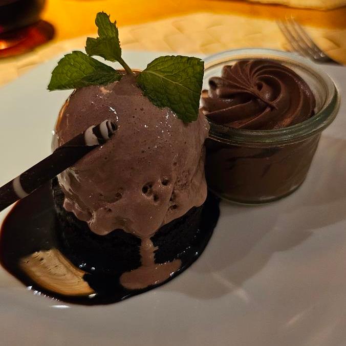 Heute entscheiden wir uns für Tomatensalat mit Parmesan und Spicy Shrimps als Vorspeise, für gebratenes Fischfilet und Rinderfilet als Hauptspeise und für ein unglaublich leckeres schokoladiges Dreierlei als Dessert. Guten Appetit!