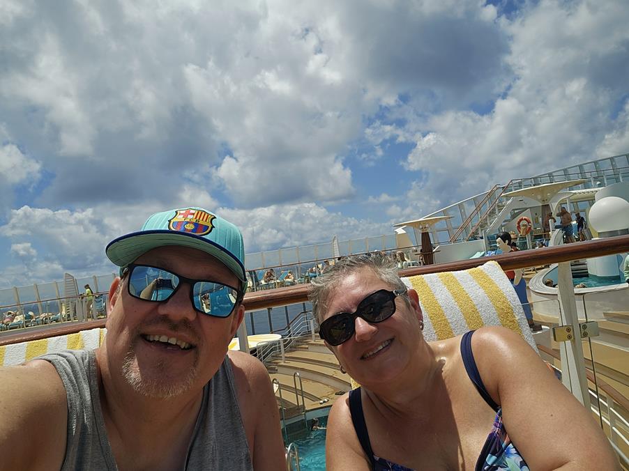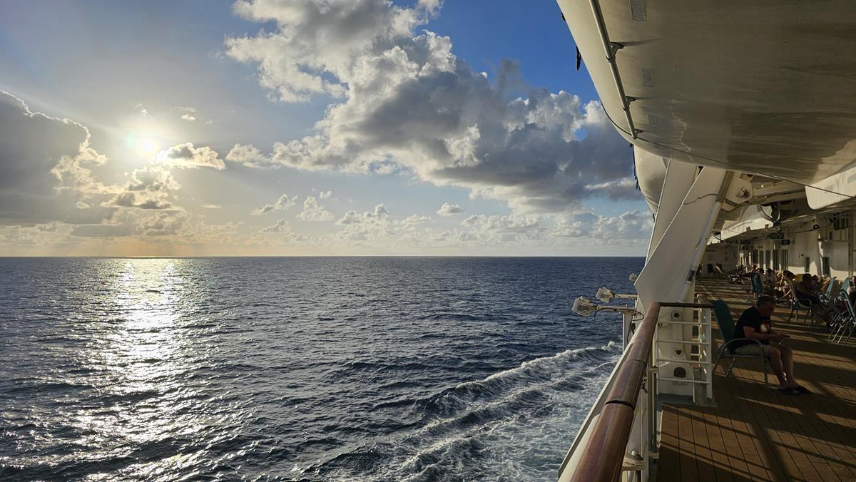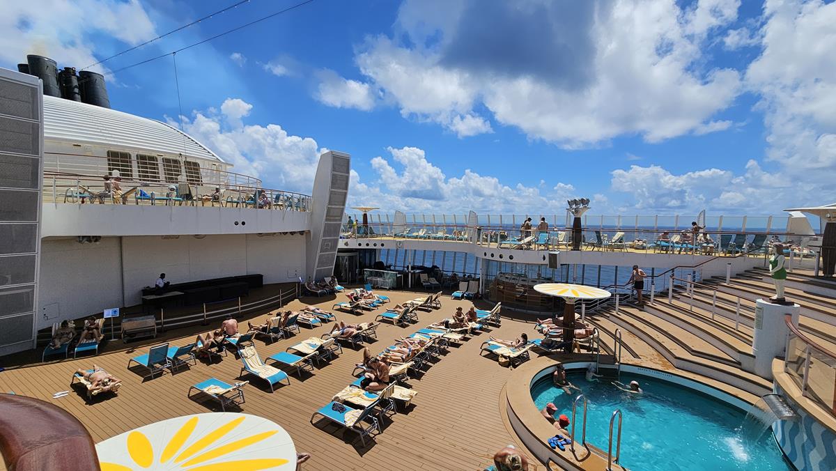 Unser heutiger Tag: Wir verbringen den Tag auf dem Pooldeck und dem Außendeck von Deck 5 mit Lesen, schlafen und chillen. Abends genießen wir im Buffalo Abendessen ein tolles Abendessen.