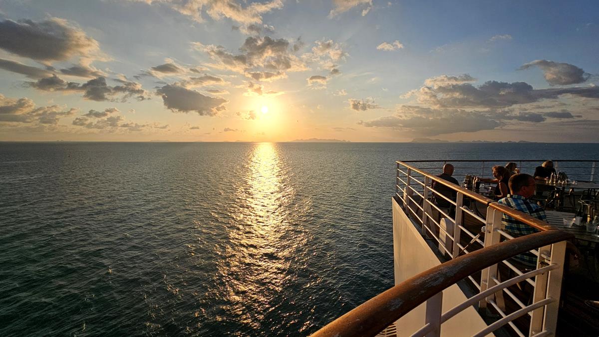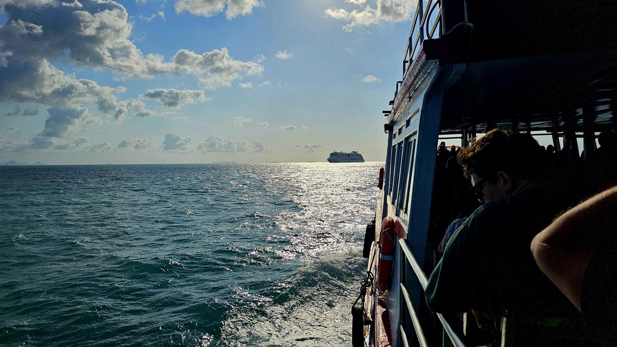 Guten Morgen von Ko Samui. Der Tag geht heute früh los. Unser Ausflug „Inselhopping zur Schweine-Insel“ startet um 9 Uhr. Und hier auf Ko Samui liegt unsere AIDAbella auf Reede und es wird getendert. Das Schiff ankert in der Bucht vor der Inselhauptstadt Nathon, nicht am Pier. Tenderzeit bedeutet immer etwas Zeitverlust, daher ist gute Planung angesagt.