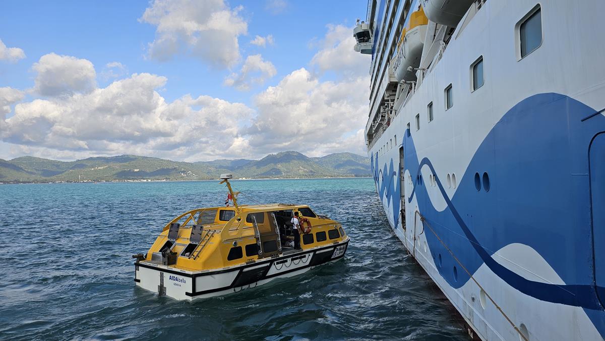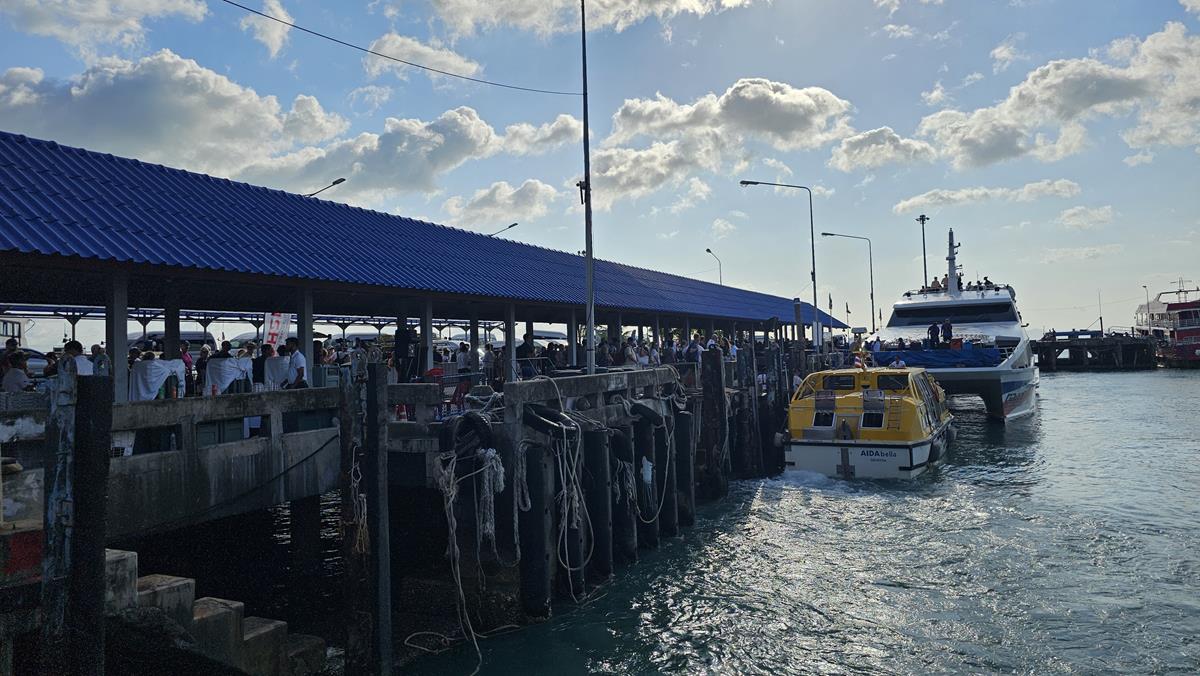 Generell können in Ko Samui Kreuzfahrtschiffe nicht direkt anlegen, sondern liegen immer auf Reede. Die Passagiere werden mit Tenderbooten zum Tenderhafen in die Inselhauptstadt Nathon gebracht. Hier starten alle Ausflüge, auch die von AIDA.