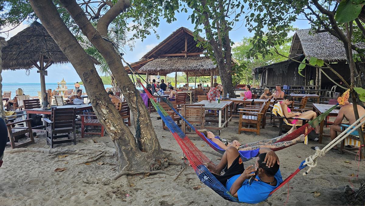 Ko Tan wird von etwa 25 Personen bewohnt. Außer zwei Restaurants und vielen Palmen gibt es nur Ruhe, die sehr selten von einem an- oder ablegenden Longtail-Boot gestört wird.