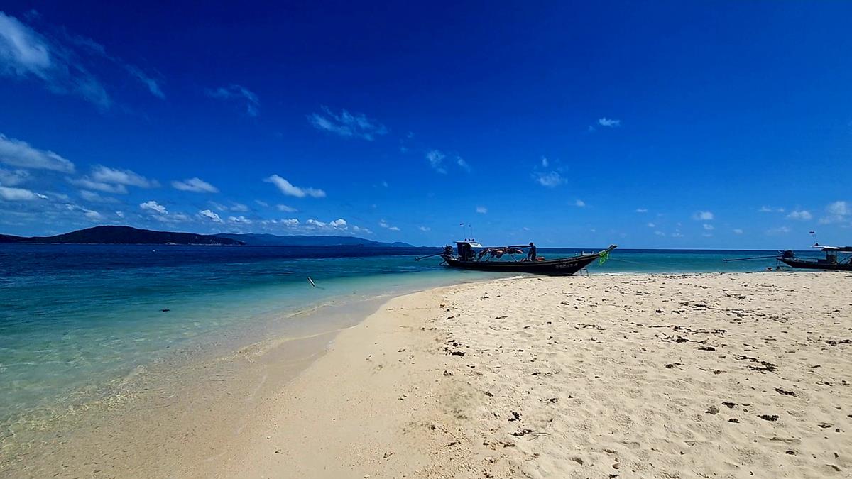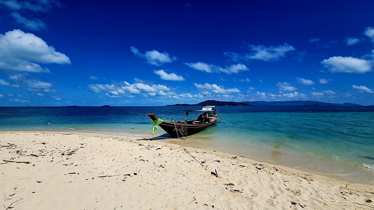 Der feine weiße Sandstrand und das kristallklare Wasser von Koh Madsum sind wunderschön und ein toller Platz für ein ausgiebiges Sonnenbad.