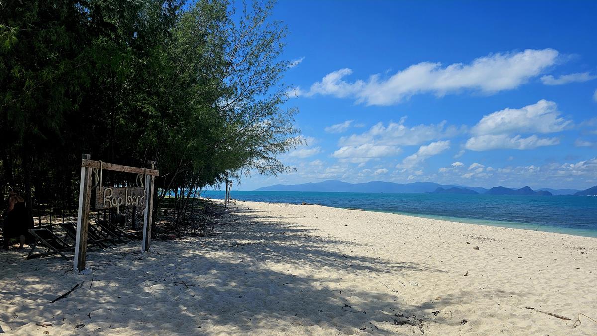 Irgendwann wird die Fahrt langsamer und wir erreichen unsere erste Insel: Ko Rap oder auch Rap Island. Ko Rap ist eine idyllische Insel im Karibik-Style. Sie hat nur einen Bewohner, nämlich den Inselbesitzer 🙂