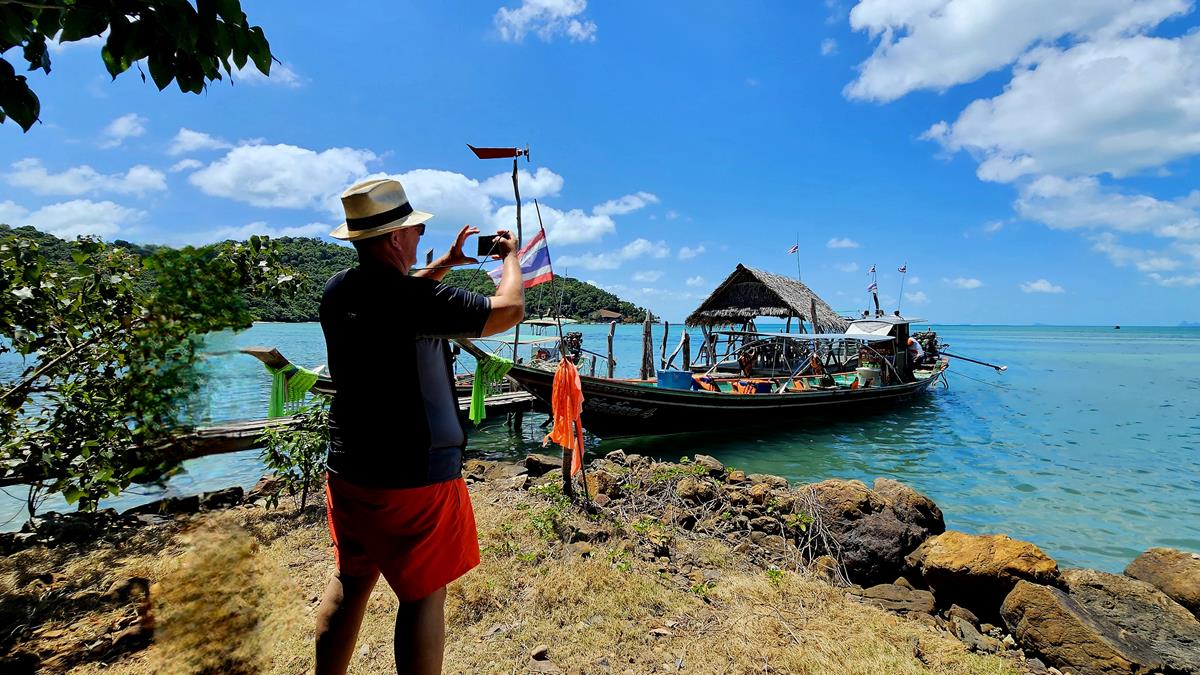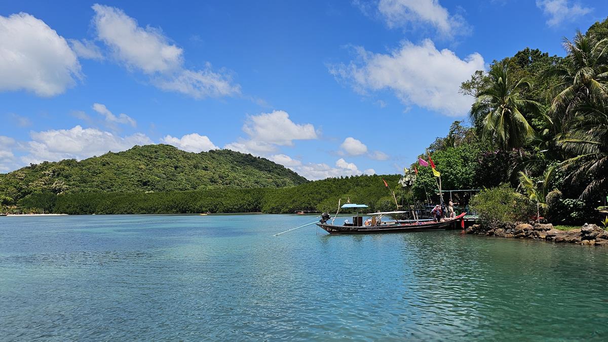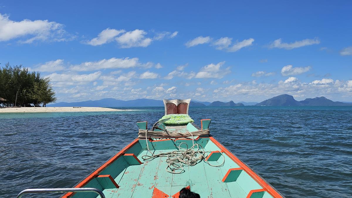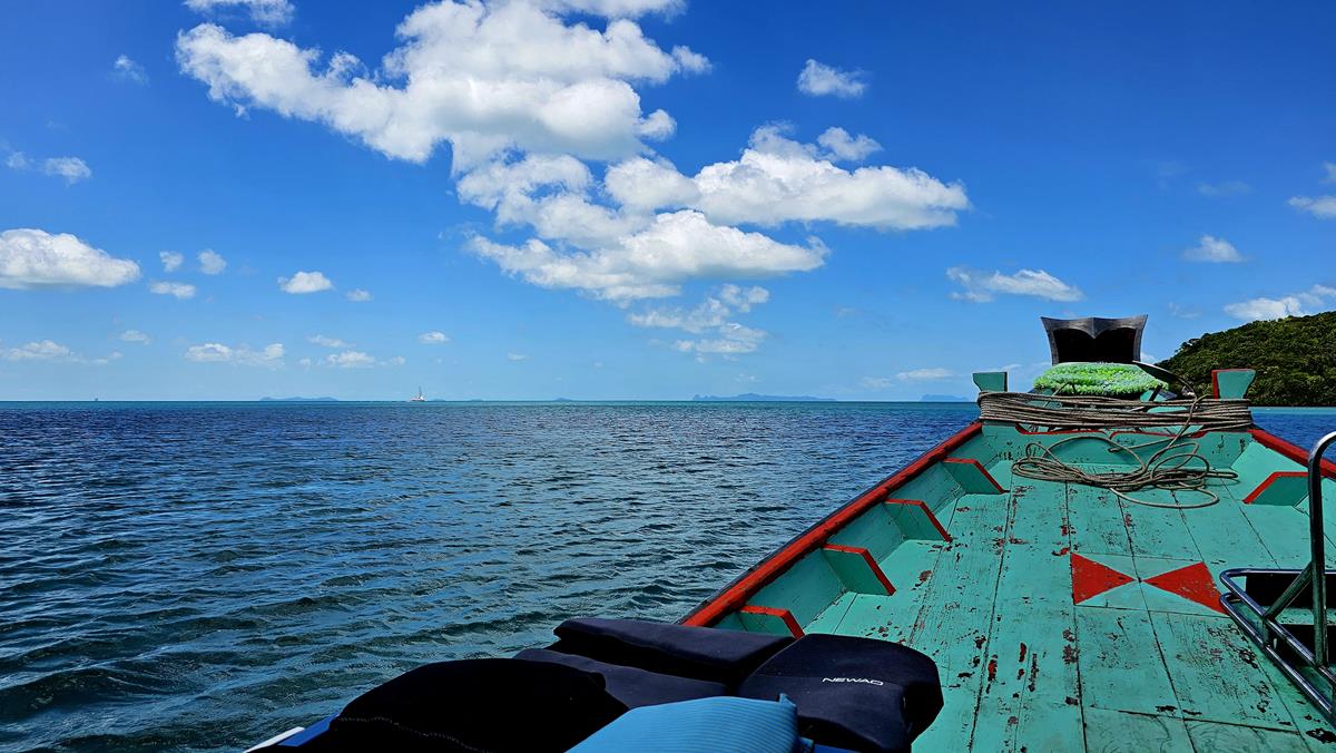 Diesmal lassen wir unsere Klamotten weggepackt. Wir setzen uns einfach mit Badekleidung ins Longtail-Boot, Rettungsweste an und gut ist es. Mehr braucht es nicht. Viel bequemer so 🙂