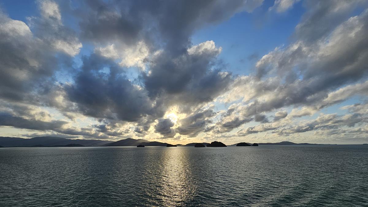 Am Tender warten wir ca 20 Minuten. Mit uns warten viele anderen Gäste, die auch von Ausflügen zurückkommen. Die Rückfahrt dauert knapp eine halbe Stunde. Schon von weitem können wir AIDAbella sehen, wie sie majestätisch in der Bucht von Nathon vor Anker liegt.
