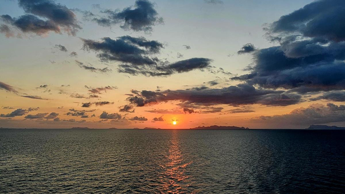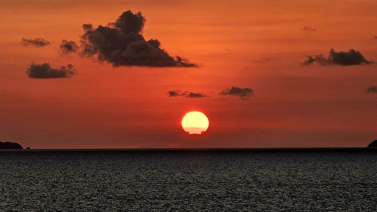 Heute gibt es einen unglaublich schönen Sonnenuntergang. Ein gelber Feuerball in einem in rot gefärbten Himmel, einfach wunderschön. Man kann sagen was man will: Die schönsten Sonnenuntergänge gibt es über dem Meer 🙂