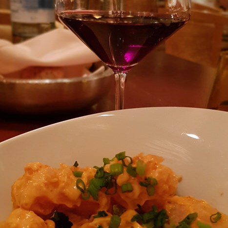 Zu meinen unvermeidlichen Spicy Shrimps und dem Filet Mignon lassen wir uns einen roten chilenischen Wein empfehlen. Und das wo wir so Weinkenner sind 😉 Eins vorweg: Wir schaffen gerade einmal eine halbe Flasche und sind bedient. Wir vertragen einfach nix… Aber der Wein trägt zu unseren guten Laune und einer leicht wirren Aussprache bei 🙂 Und nachdem Astrid zum Dessert eine Brüll-Creme bestellt ist der Lachflash komplett! Sie meint natürlich eine Creme Brûlée 🙂
