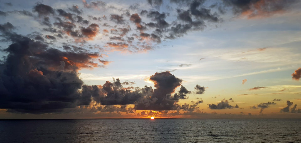Viel mehr passiert bei uns auch heute nicht. Zwischendrin treibt uns ein kurzer Regenschauer unter das Dach, ansonsten ist schönstes Seetagwetter.