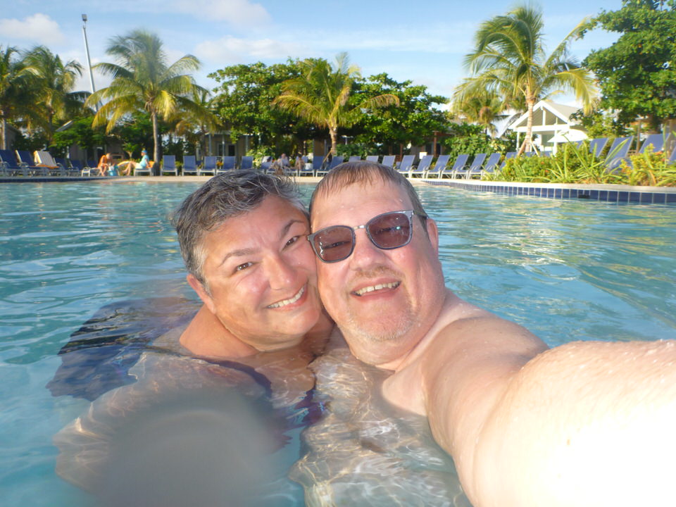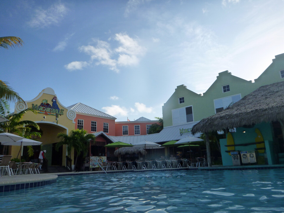 Astrid hat gelesen, dass sich im Cruise Center beim Lokal Margaritaville ein kostenloser Pool zur Verfรผgung steht. Das ist jetzt unser Ziel. Also laufen wir den Strand entlang Richtung Schiff und Cruise Center.