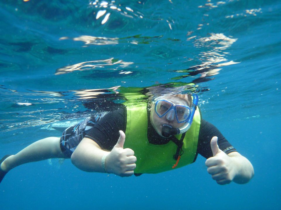 Wir fahren zuerst ein paar Minuten entlang der Kรผste zu unserem Schnorchel-Riff. Hier haben wir fast 45 Minuten Zeit zum Schnorcheln und Fische gucken.