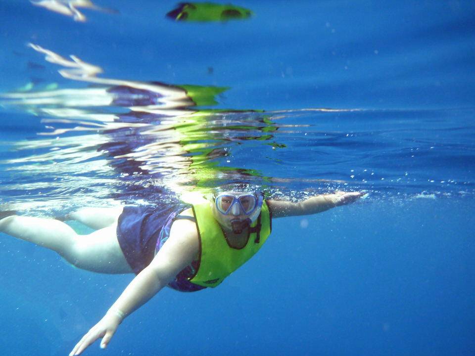 Bevor wir zum Schnorcheln ins Wasser dรผrfen, gibt der Kapitรคn eine kurze, aber prรคzise Einweisung in die Handhabung der Schnorchel Weste die jeder tragen muss. Genauso werden wir in die Nutzung der Maske und der Flossen eingewiesen. Beides wird bei Bedarf von der Crew bereitgestellt. Masken haben wir unsere eigenen dabei, Flossen leihen wir uns aus ๐