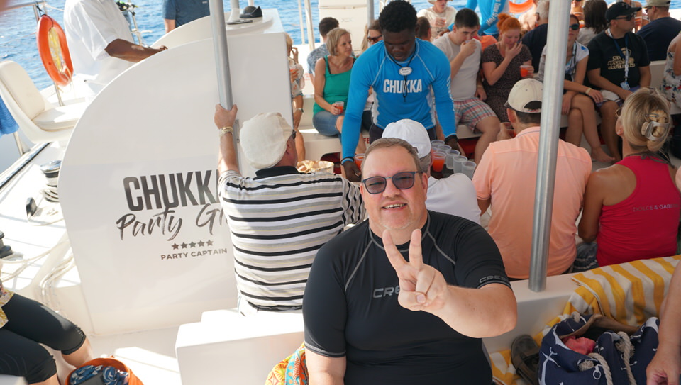 Die Zeit im Wasser vergeht viel zu schnell. Auf dem Boot beginnt jetzt die Party, karibische Musik tรถnt aus den Lautsprechern und Rumpunsch lรคuft in Strรถmen. Ist zum Glรผck eine sehr gute Mischung mit relativ viel Punsch und nicht ganz so viel Rum. An Bord merken wir erst wie anstrengend so eine dreiviertel Stunde schnorcheln ist. Der angebotene Rumpunsch lรคsst die Lebensgeister wieder aufleben ๐