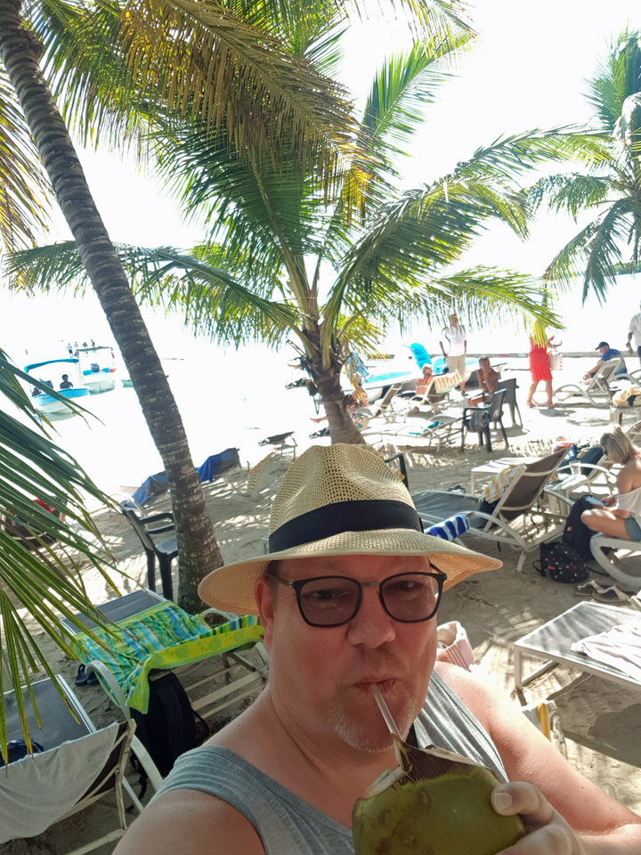 Für uns war der Strand wie erwartet. Das Wasser hatte angenehme 29 Grad, die Lufttemperatur war ähnlich. Die Palmen waren typisch karibisch!