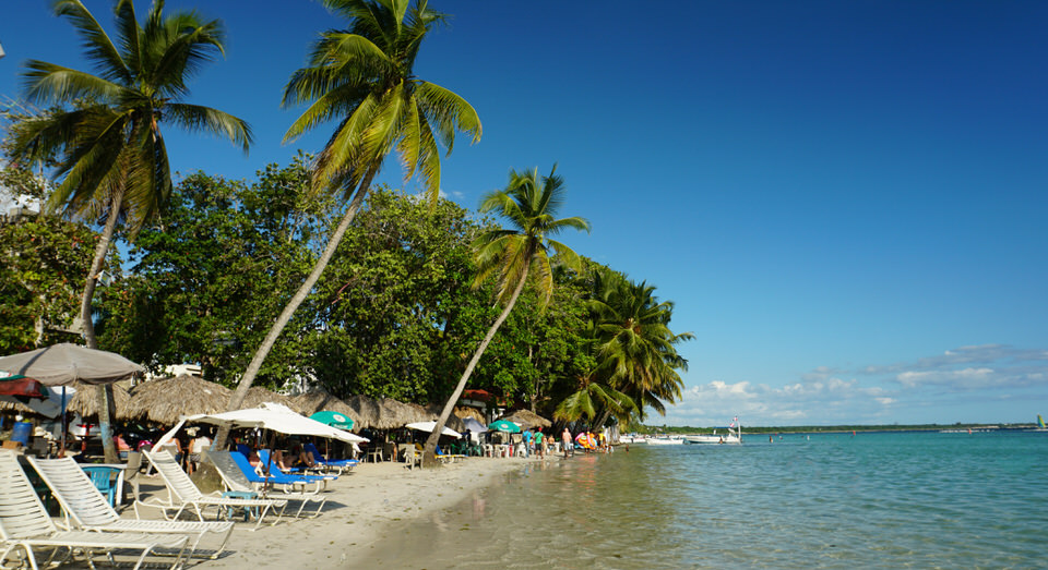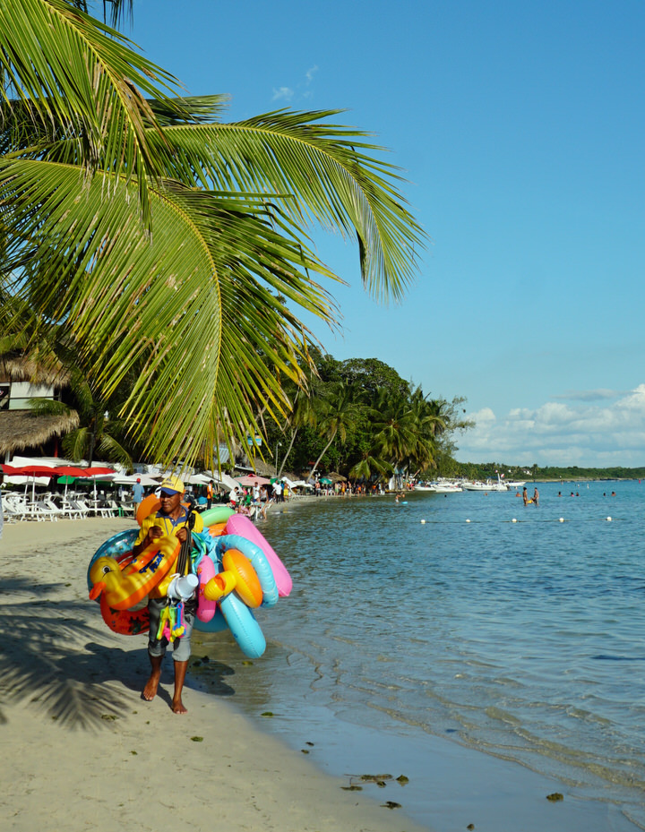 In Boca Chica erleben wir den typisch dominikanischen Trubel: Hotels und Restaurants säumen den weißen Sandstrand, Verkäufer bieten Waren feil und Imbissbuden servieren gegrillten Fisch oder andere Leckereien.