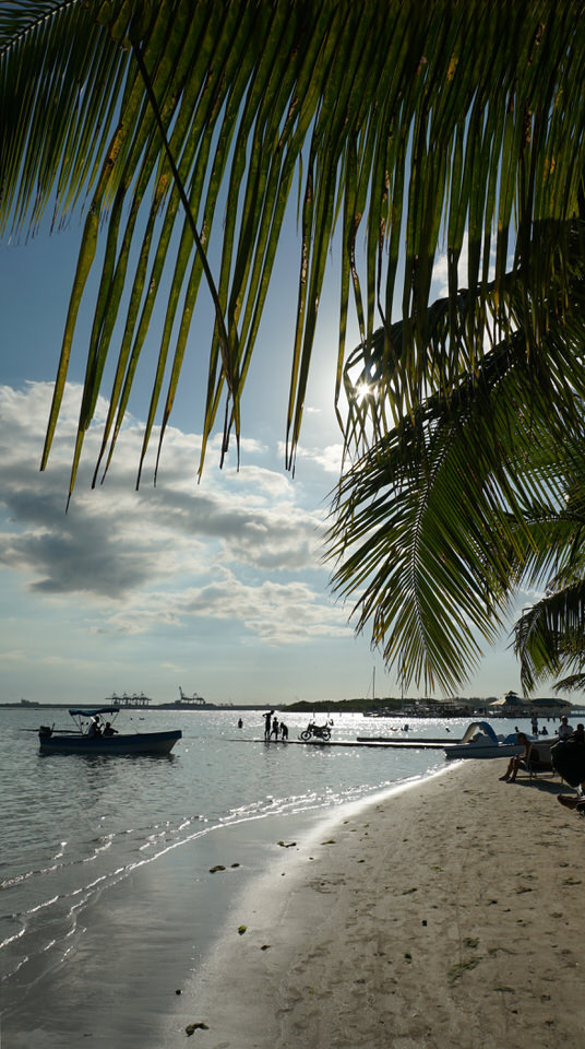 Relaxed spazieren wir den Strand entlang. Immer mit den Füßen im Wasser schlendern wir unter Palmen durch den Sand. Besser geht’s nicht 🙂