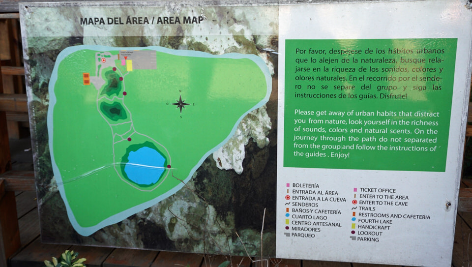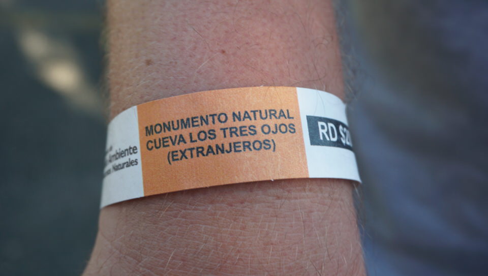 Nach einer kurzen Fahrt von 10 Minuten erreichen wir einen unscheinbaren Parkplatz. Der kleine Nationalpark Cuevas los tres ojos – „Höhlen der drei Augen“ – liegt nur 8 Kilometer vom Hafen entfernt. Wir steigen aus und Eduardo holt für alle die Eintrittsbändchen.