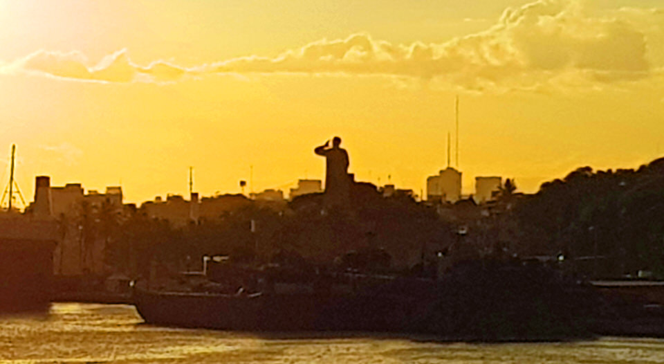 Auch die Kolumbus-Statue am Hafen sieht in diesem Licht schön aus. Kolumbus, der in die Ferne schaut und von neuen Reisen träumt …