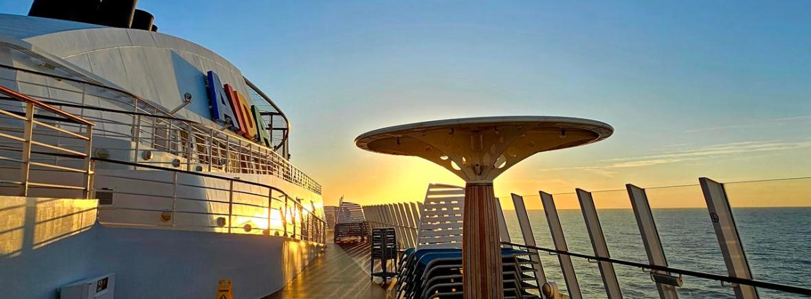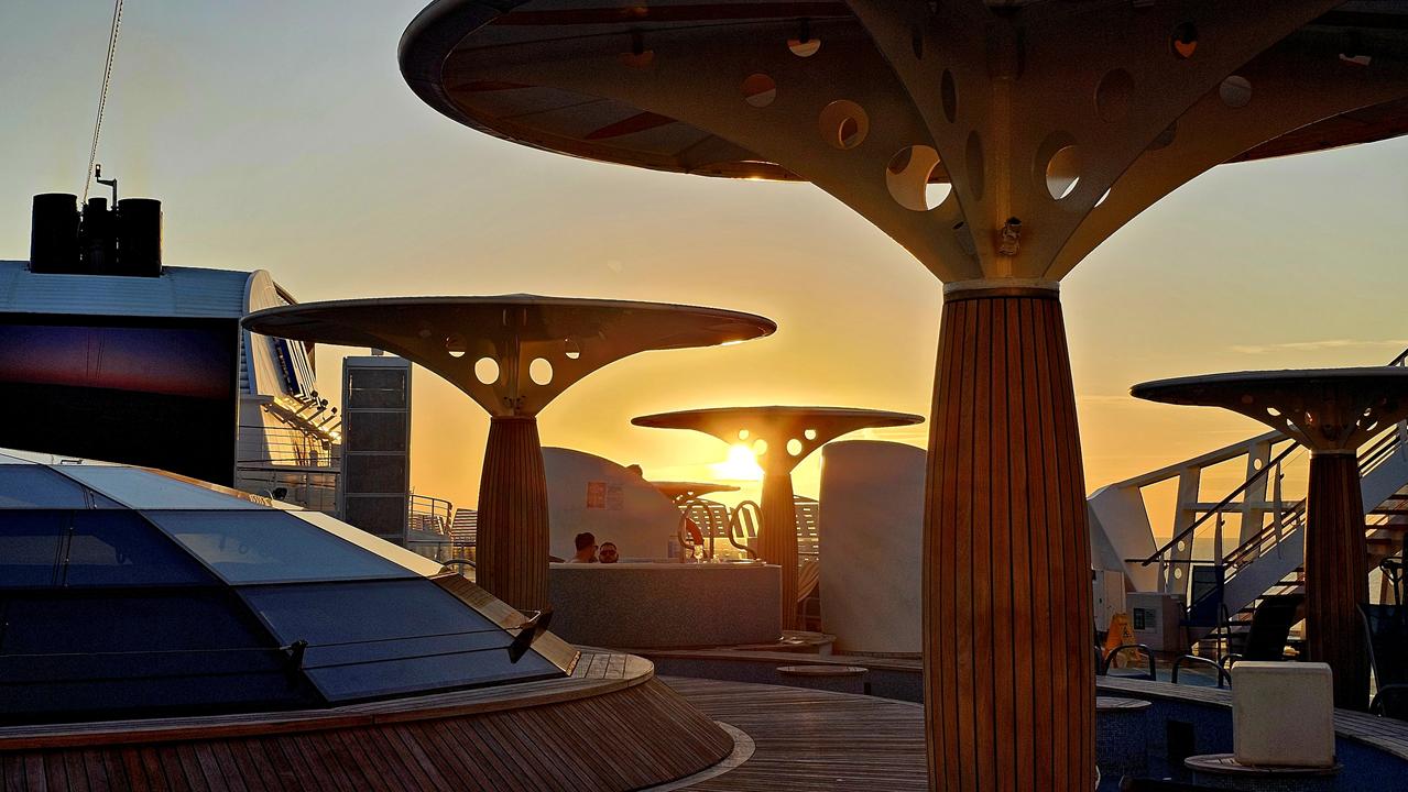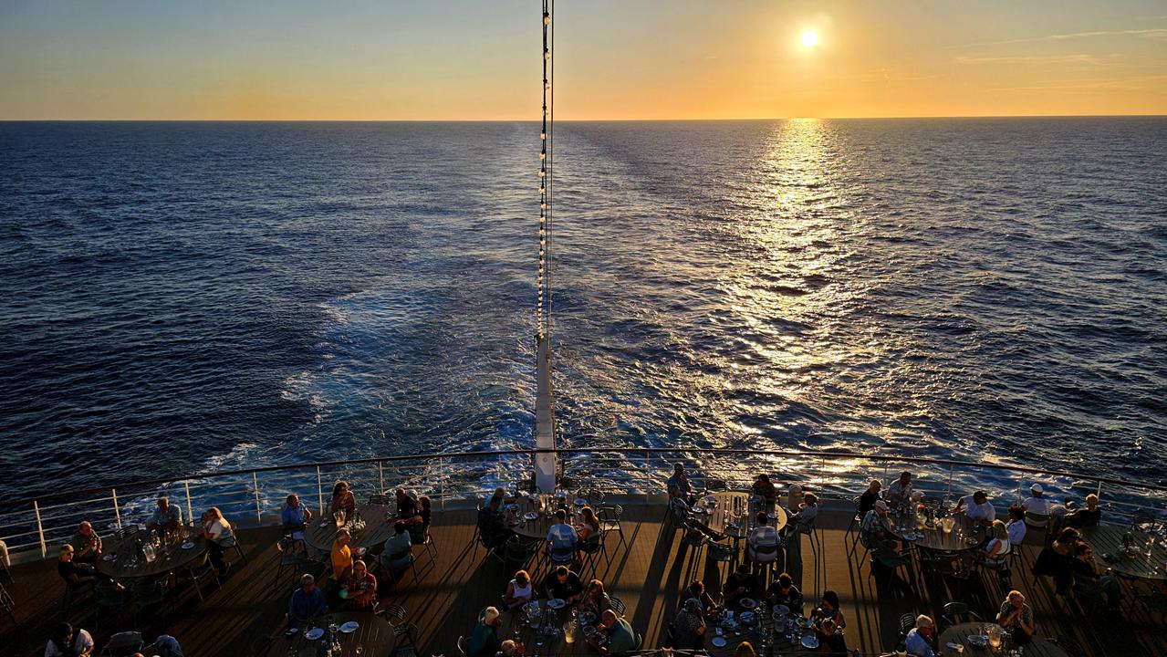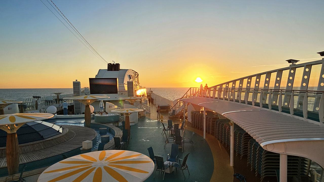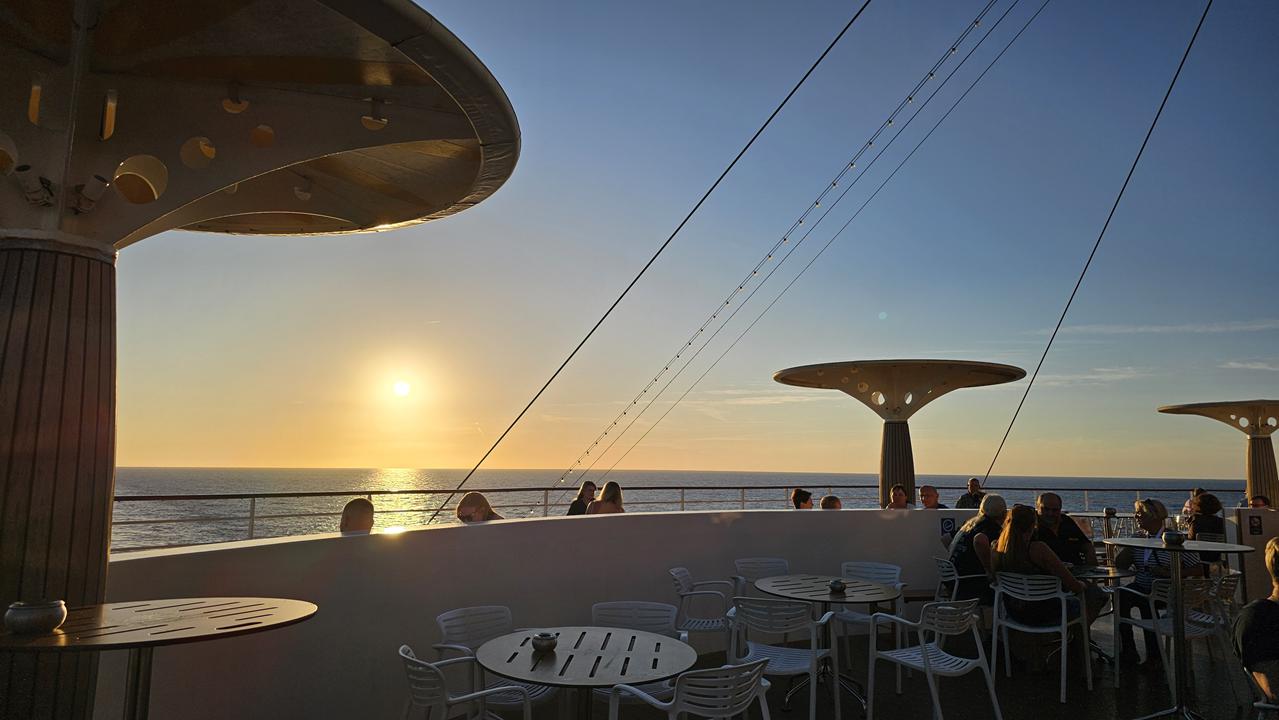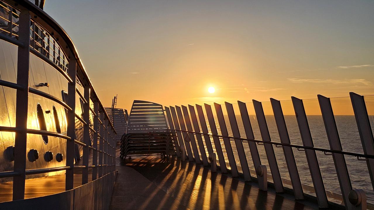 Der Abend ist schnell erzählt. Nach dem Abendessen machen wir einen Spaziergang über das Pooldeck und beobachten den Sonnenuntergang. Ein paar schöne Sonnenuntergang-Fotos entstehen dabei 🌅