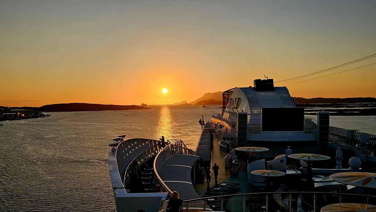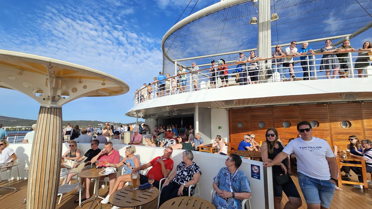 Zum Ablegen um 17 Uhr stellen wir uns auf dem Pooldeck an die Reling und beobachten das Ablegemanöver. Zwischendurch genießen wir einen erfrischenden Limoncello Sprizz, so lecker!