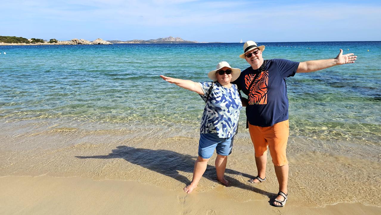 Baia Sardinia ist bekannt für seine traumhaften Sandstrände und das türkisfarbene, klare Meer. Ideal zum Schwimmen, Schnorcheln und Windsurfen. Der Ort hat eine entspannte Atmosphäre mit kleinen Boutiquen, Cafés und Strandbars. Tourguide Lana und Übersetzer Lino berichten während eines kleinen Rundgangs anschaulich über den Ort, die Landschaft und Sardinien.