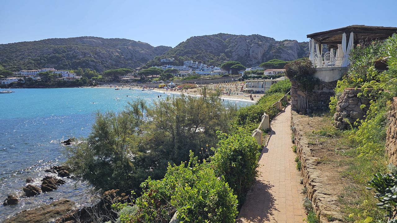 Direkt an der Küste liegt ein schmaler Weg, der wir entlang spazieren. Immer wieder ergeben sich herrliche Ausblicke auf die Bucht, das smaragdgrüne Meer und den Strand von Baia Sardinia.