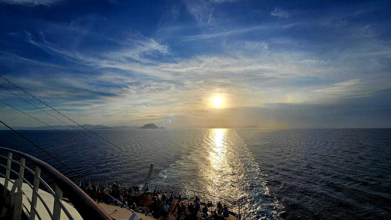Der Sonnenaufgang ist wunderschön. So früh sind nur wenige Menschen an Deck, es ist ruhig und friedlich. Die bergige Landschaft Sardiniens zieht langsam an uns vorbei, während wir Kurs auf den Hafen nehmen.