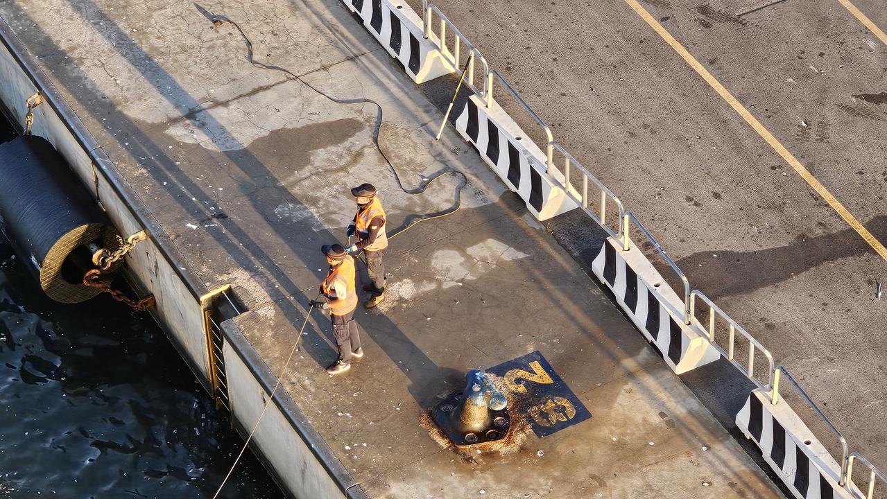 Gegen 8.45 Uhr verlassen wir das Schiff und laufen zum Treffpunkt bei den Ausflugsbussen. Natürlich darf dabei das obligatorische Gangway-Foto nicht fehlen. Zumal das Foto diesmal mit unserer gebuchten Foto-Flat abgedeckt ist.