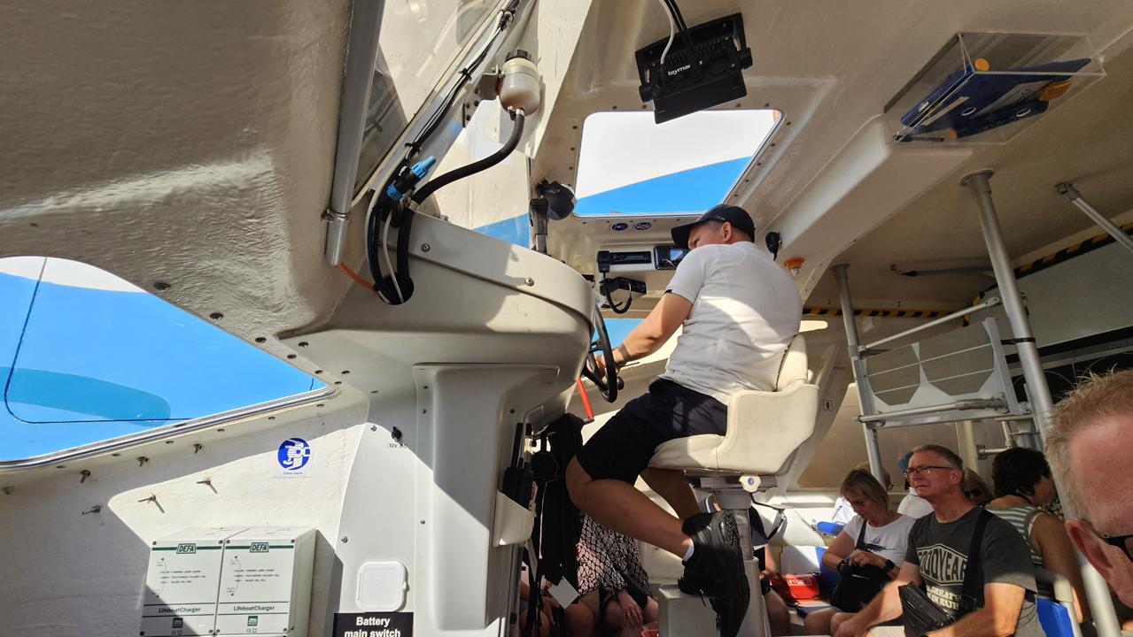 Es wurden Stühle aufgestellt, damit man sich auch mal setzen kann. Gerade für ältere Leute richtig sinnvoll, die nicht mehr so gut lange stehen können. Wird auch gerne genutzt, wie wir sehen 🙂 Alle sind super entspannt und gut gelaunt. Kein Gedrängele, keine motzenden Leute, alles läuft friedlich und zügig ab. Kurz nach zehn sind wir bereits auf dem Tenderboot und unterwegs. So ein entspanntes Tendern haben wir noch nicht erlebt, danke AIDAstella!