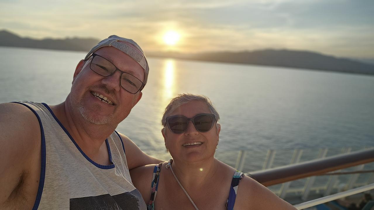 Irgendwann suchen wir uns ein Plätzchen im hinteren Bereich, damit wir besser den Sonnenuntergang und auch das Ablegen beobachten können. Die untergehende Sonne taucht alles in ein wunderschönes warmes Licht. So schön!