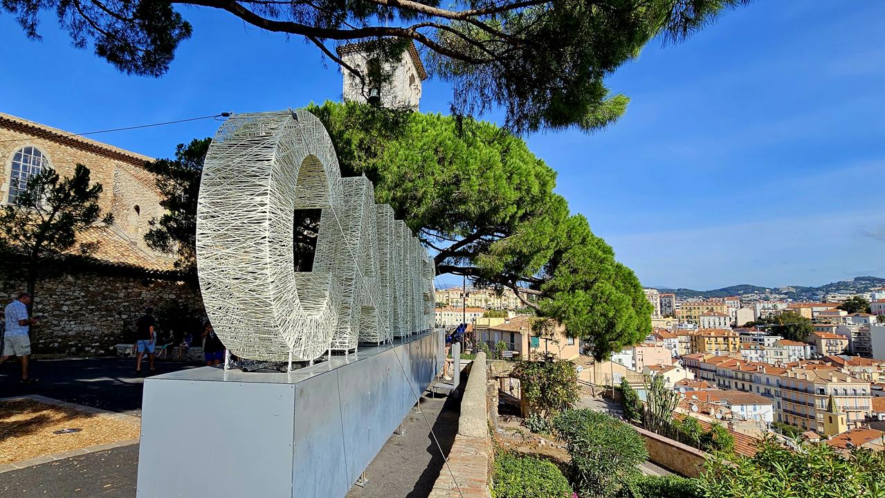 Hier oben befindet sich auch der bekannte „Cannes-Schriftzug“, der auch von weithin aus der Stadt heraus sichtbar ist. Der Blick von hier über die Stadt ist einfach gigantisch.