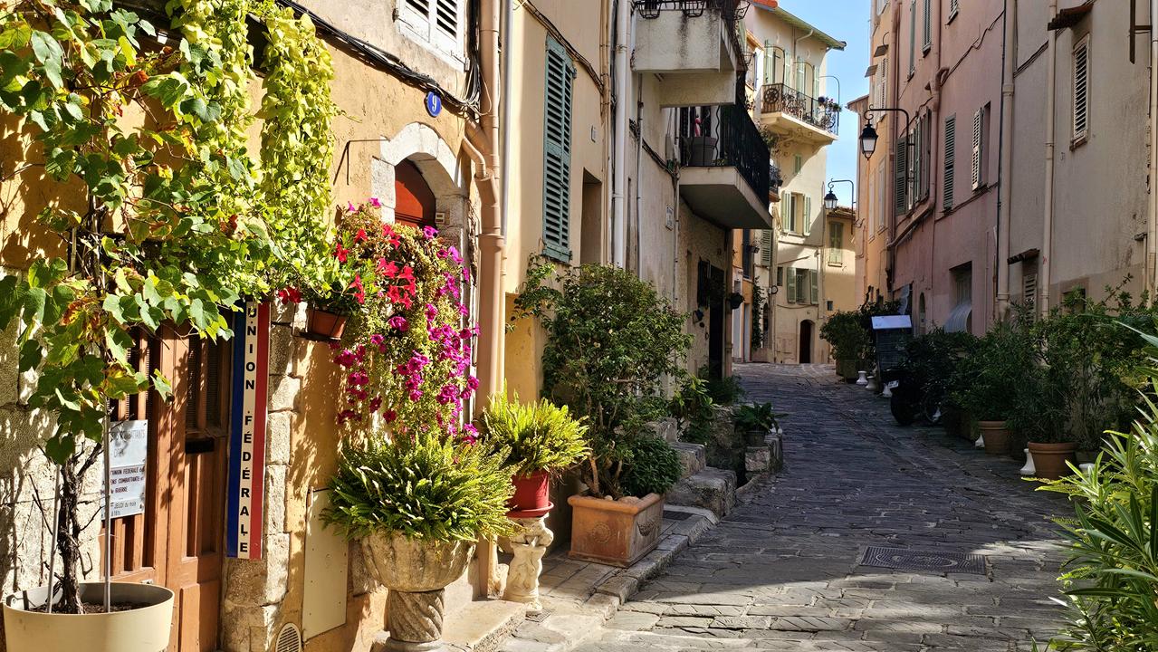 Eine der schönsten Aktivitäten hier ist es ganz einfach, durch die Gassen der Altstadt zu schlendern. Genau hier zeigt sich das alte Cannes von seiner authentischsten Seite. Wir lassen uns treiben, spazieren gemütlich durch gepflasterte, farbenfrohe und liebevoll mit Blumen geschmückte Straßen – meist bergab, über Treppen und Kopfsteinpflaster. Unterwegs entdecken wir malerische Fassaden, kleine typische Restaurants und diese warme, historische Atmosphäre, die so gar nichts mit dem Trubel der Croisette zu tun hat. Dieser Spaziergang gehört einfach dazu, wenn man die Seele der Stadt wirklich verstehen möchte.
