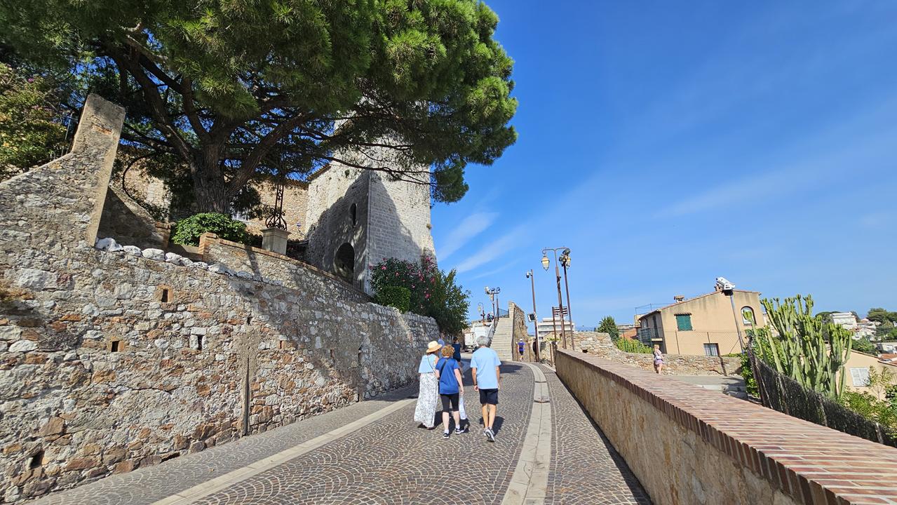 Unser erstes Ziel ist die Altstadt von Cannes – das historische Viertel Le Suquet. Sie liegt auf einem malerischen Hügel ganz in der Nähe des Jachthafens Le Vieux Port und ist bequem zu Fuß erreichbar. Wir finden uns schnell zurecht, denn überall weisen Schilder den Weg, und so marschieren wir einfach los. Es geht bergauf, über Treppen und durch schmale Gassen – alles wunderbar mittelalterlich und unglaublich charmant. Le Suquet ist geprägt von steilen Kopfsteinpflasterstraßen, pastellfarbenen Häusern und kleinen, liebevollen Läden. Hoch oben auf dem Hügel thront das Château de la Castre – genau unser Ziel.