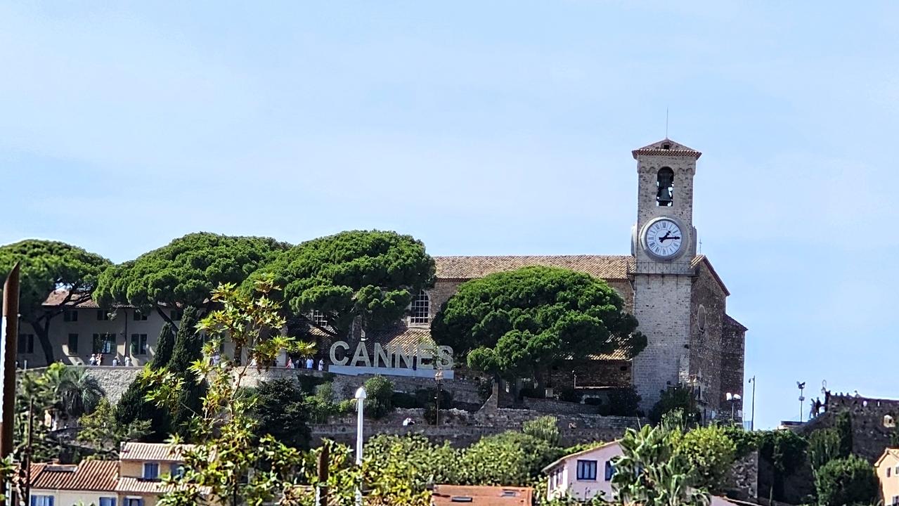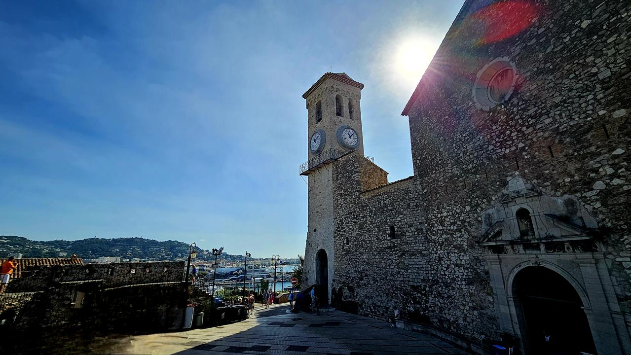 Irgendwann zieht es uns weiter. Direkt neben dem Kastell und dem großen „Cannes“-Schriftzug liegt die Kirche Notre-Dame-d’Espérance mit ihrem markanten, hohen Turm.