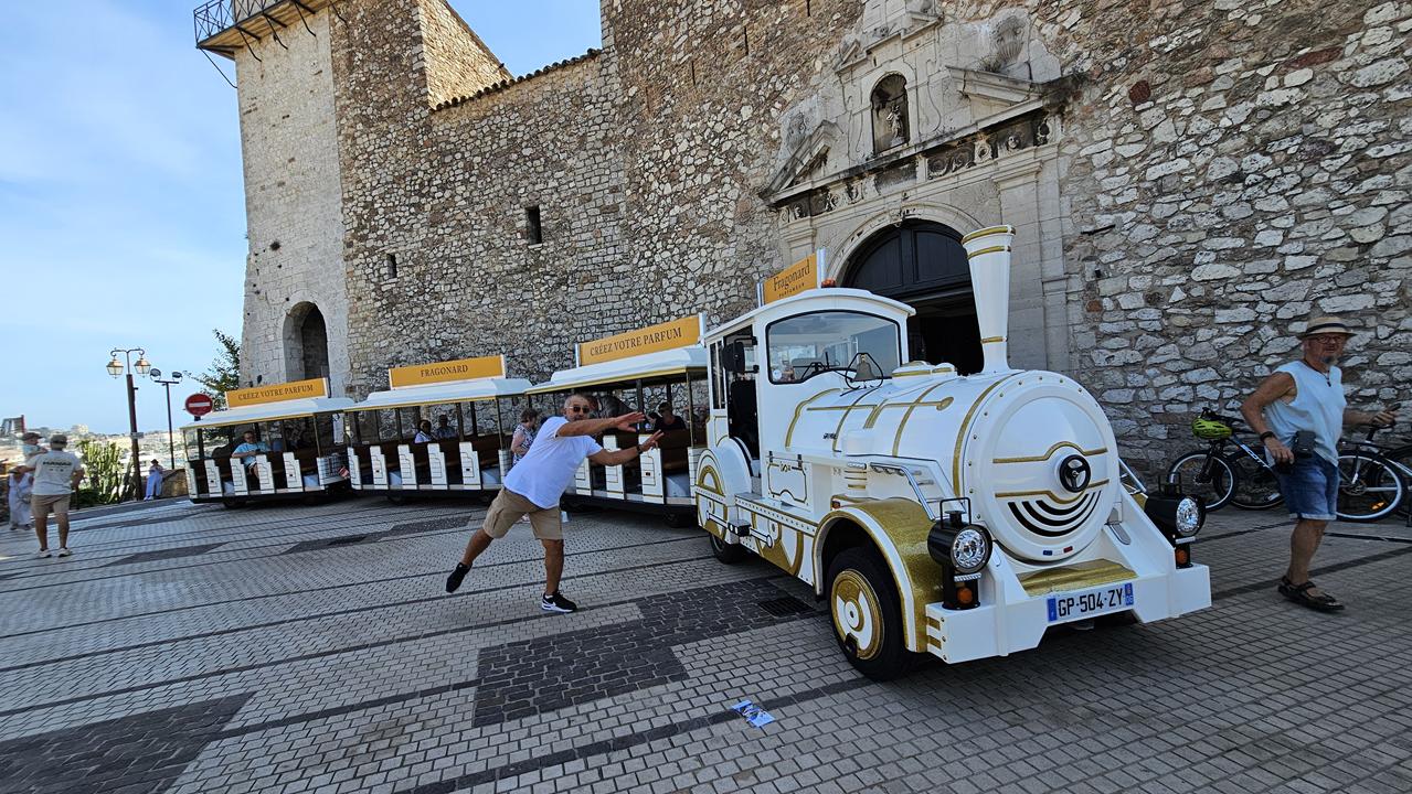 Die Bimmelbahn – oder auch „Petit Train“ – fährt einen Rundkurs, der uns bis zum Ende der Croisette und auch bis zum Gipfel des Altstadt-Hügels bringt. Dort waren wir heute morgen zwar schon, aber das macht nichts. Doppelt hält besser 🙂